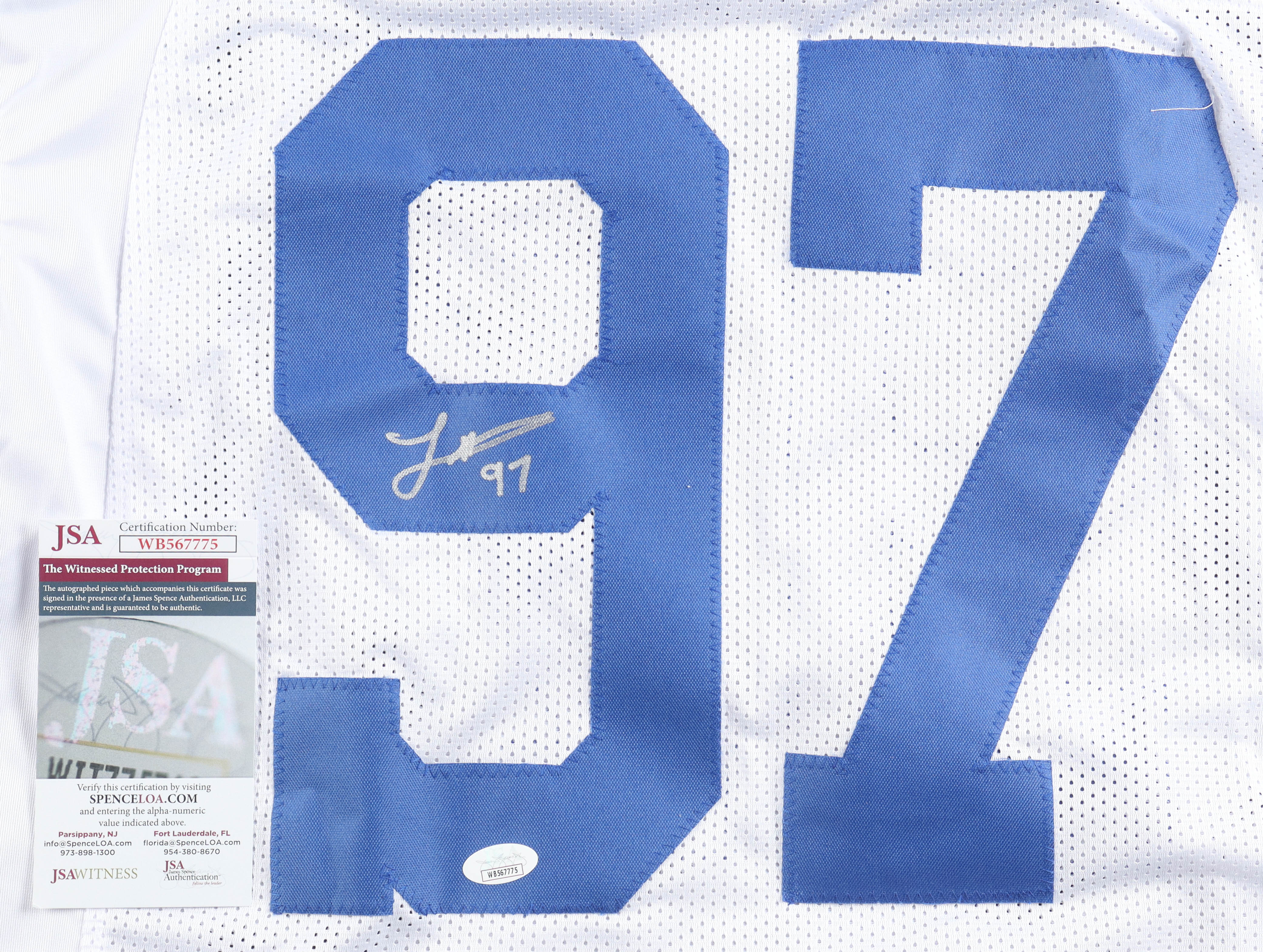 Custom jersey with everything sewn on, size XL. Hand-signed by Laiatu Latu.