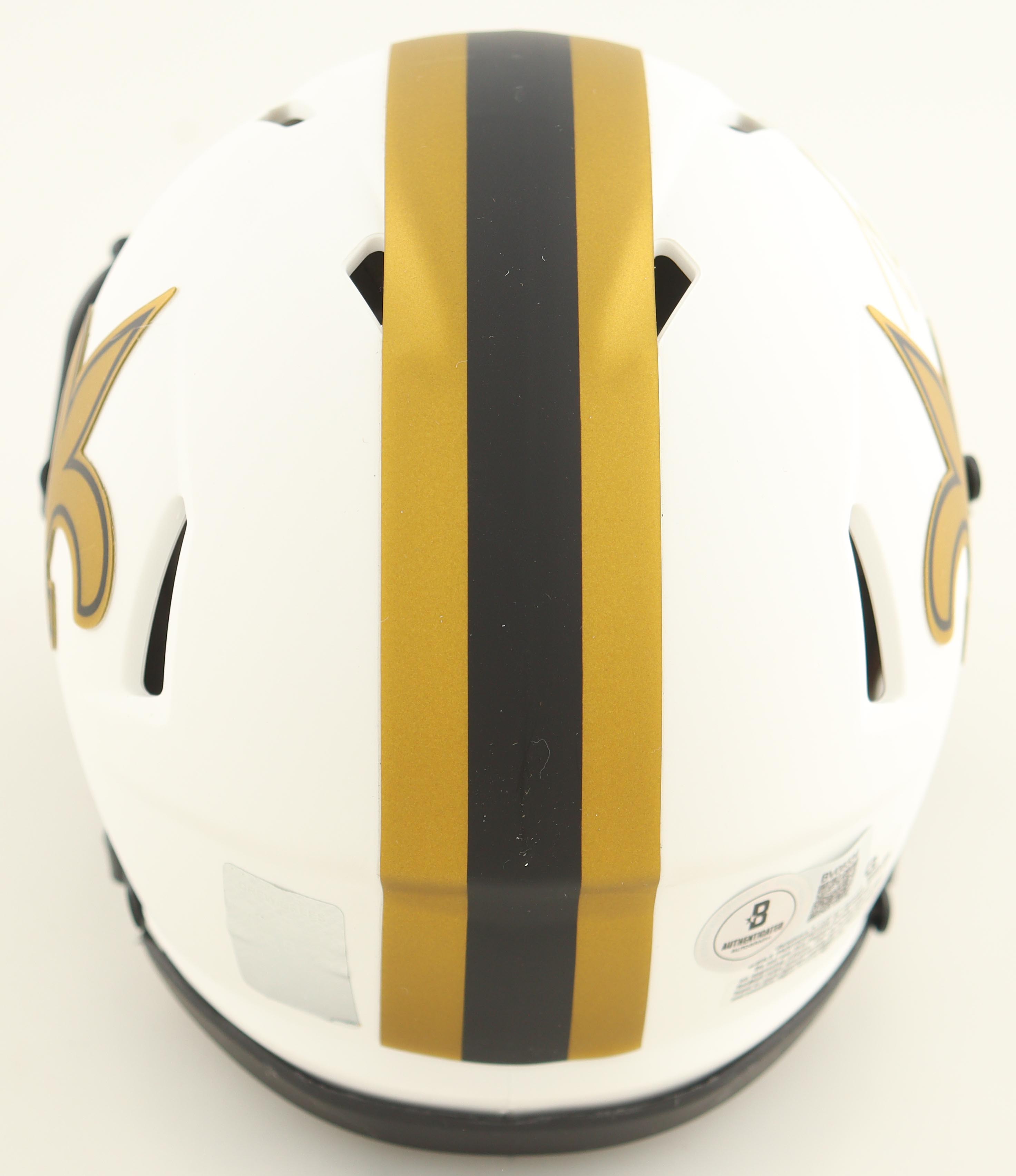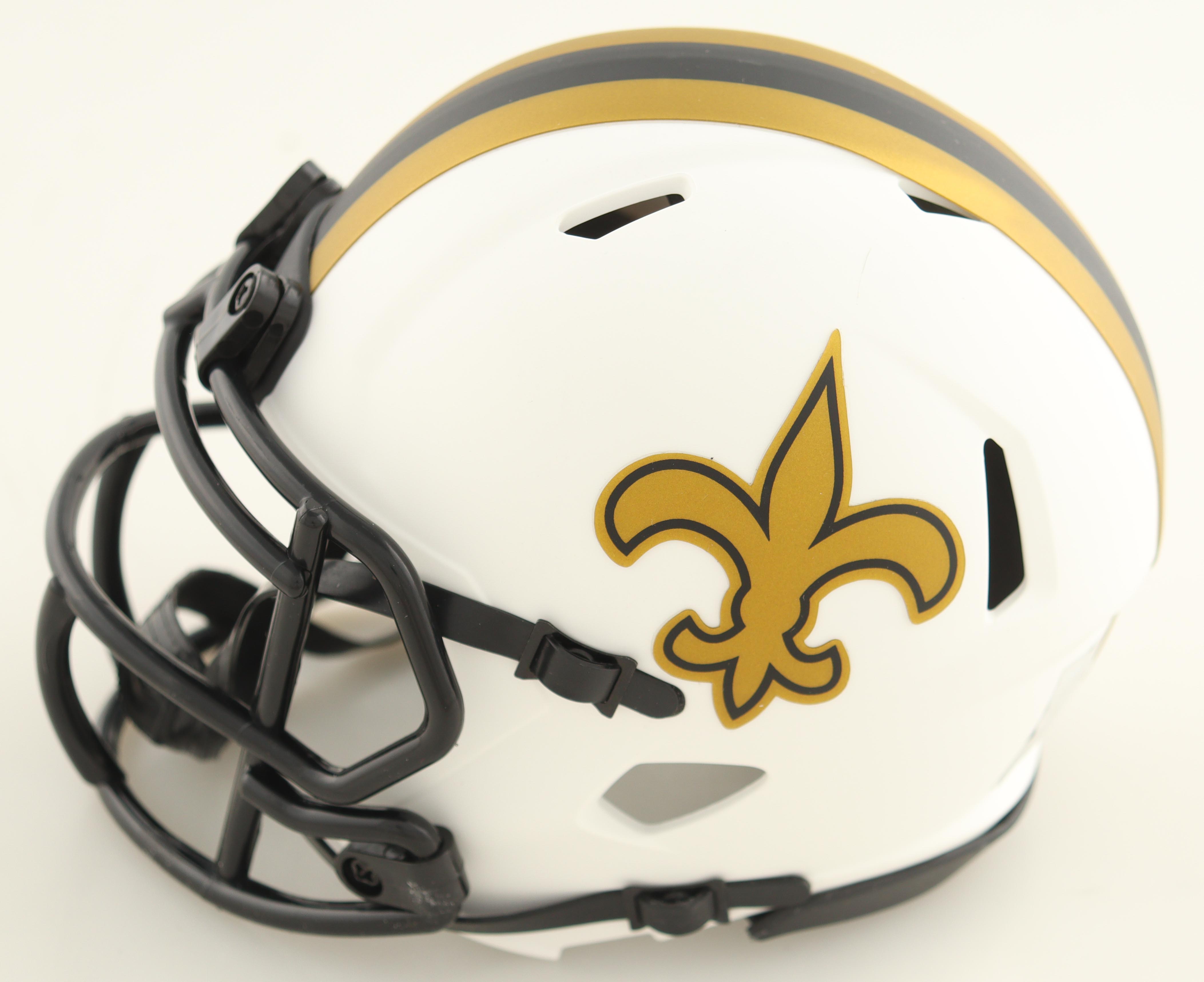 Riddell New Orleans Saints Lunar Eclipse Alternate Speed Mini Helmet. Hand-signed and inscribed by Drew Brees.
