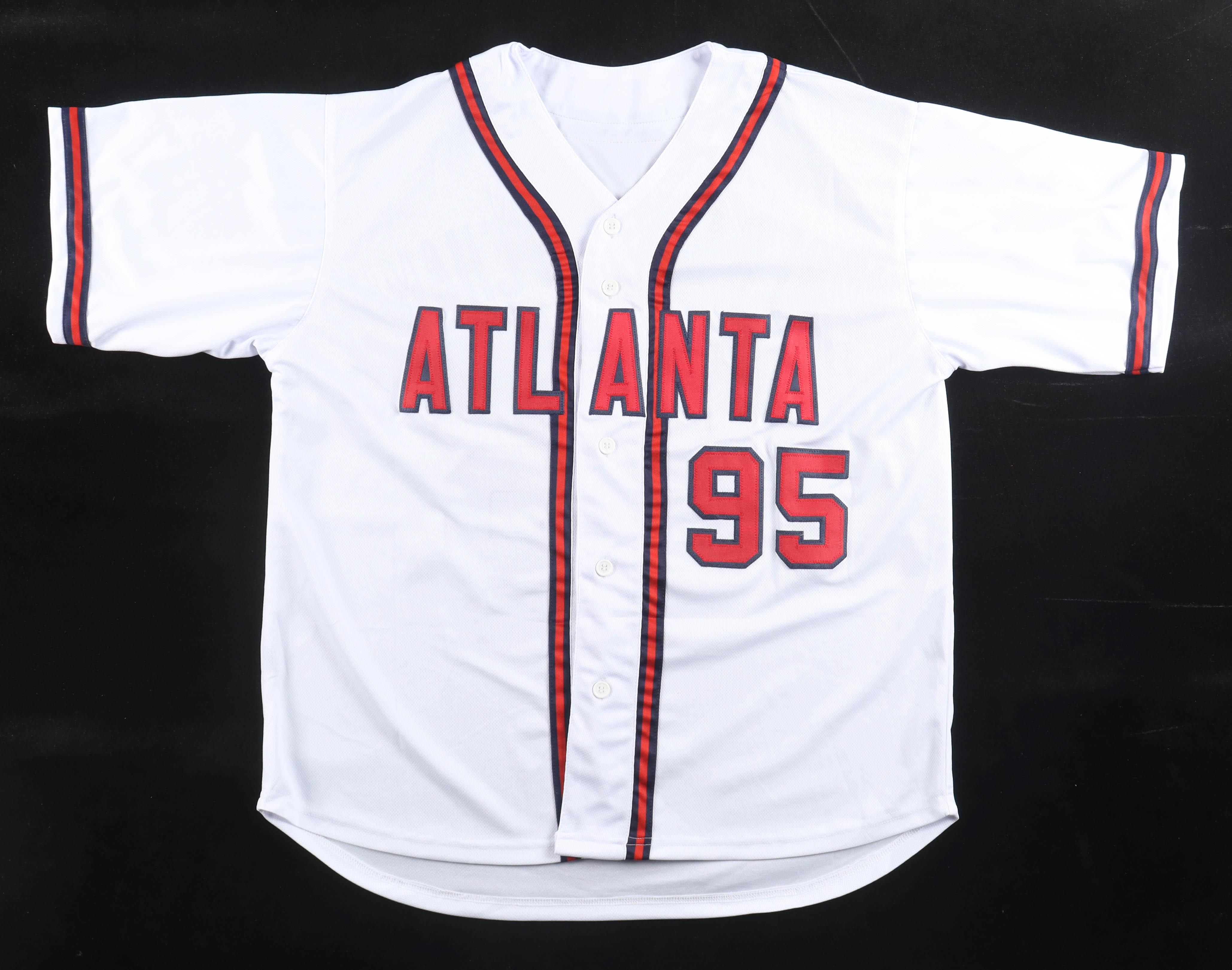 Custom jersey. Everything is sewn on, size XL. Hand-signed by (6) including Dave Justice, Steve Avery, Mark Wohlers, Kent Mercker, Javier Lopez, and Mike Deveraux.