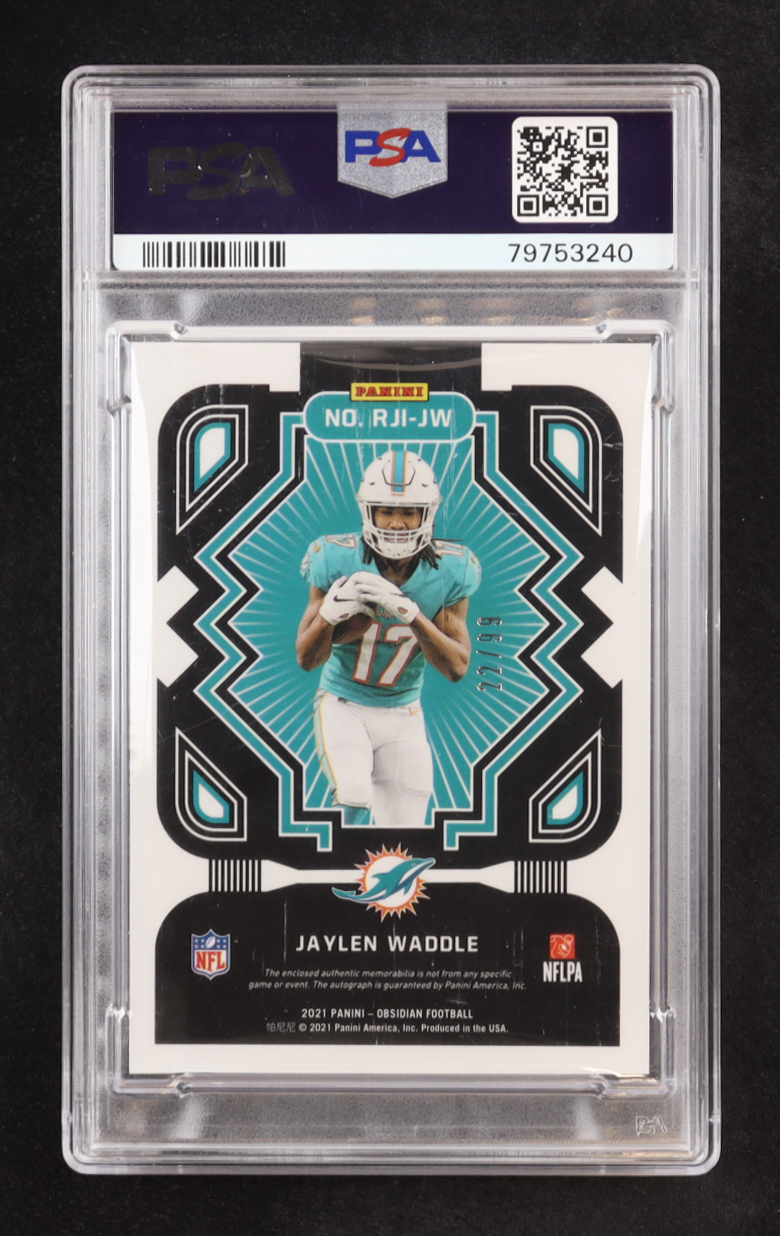 Jaylen Waddle 2021 Panini Obsidian Rookie Jersey Ink Electric Etch Orange #13 #22/99 RC (PSA 9)