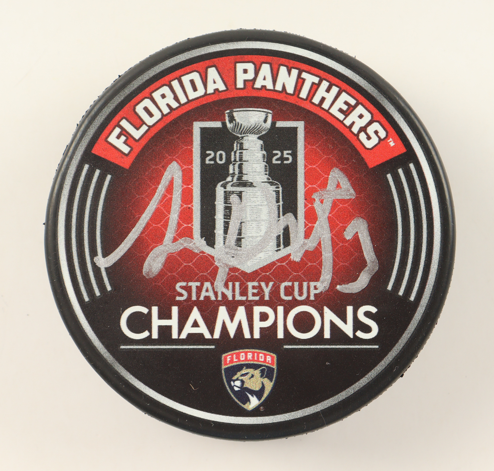Florida Panthers 2025 Stanley Cup Champions Logo Hockey Puck. Hand-signed by Sam Reinhart (Florida Panthers).