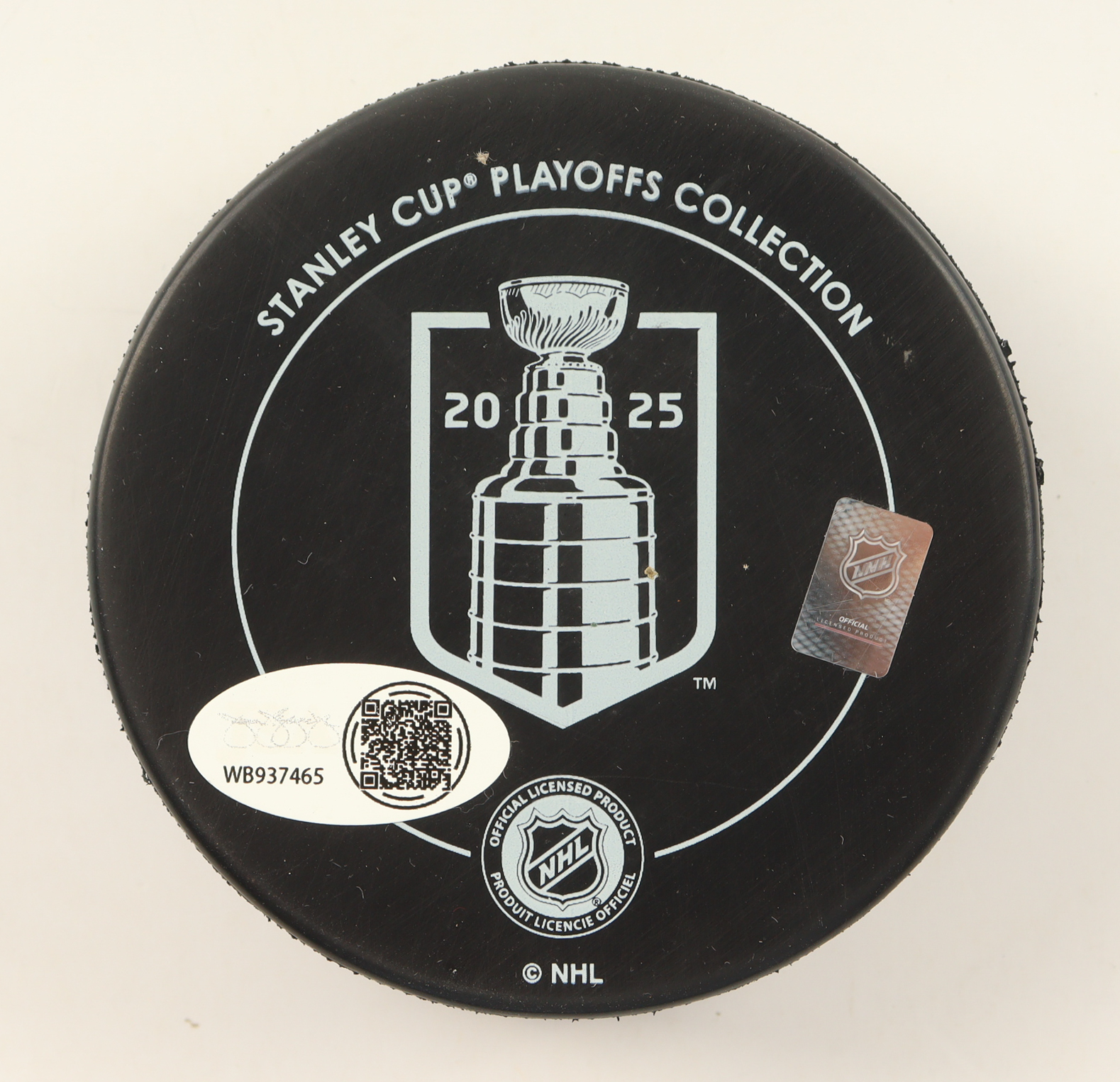 Sam Reinhart Signed Panthers 2025 Stanley Cup Champions Logo Hockey Puck (JSA)