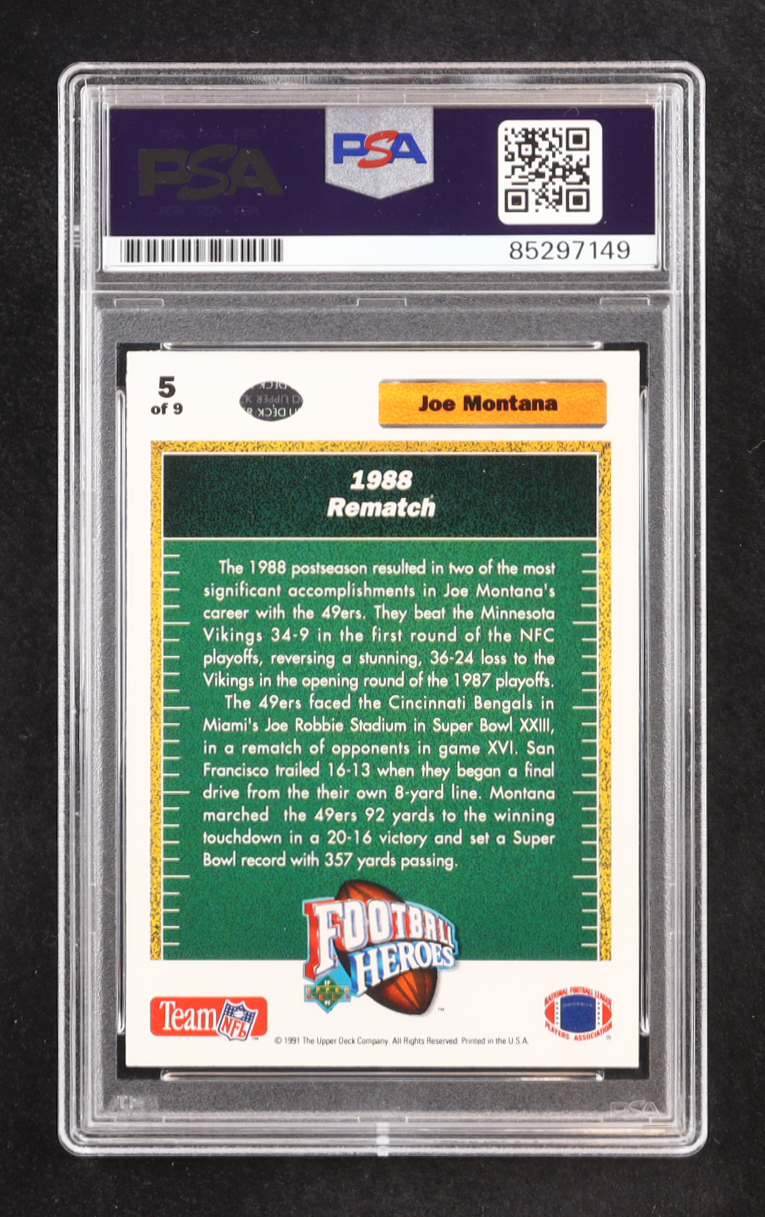 Joe Montana Signed 1991 Upper Deck Football Heroes #5 (PSA | Autograph Graded PSA 10)