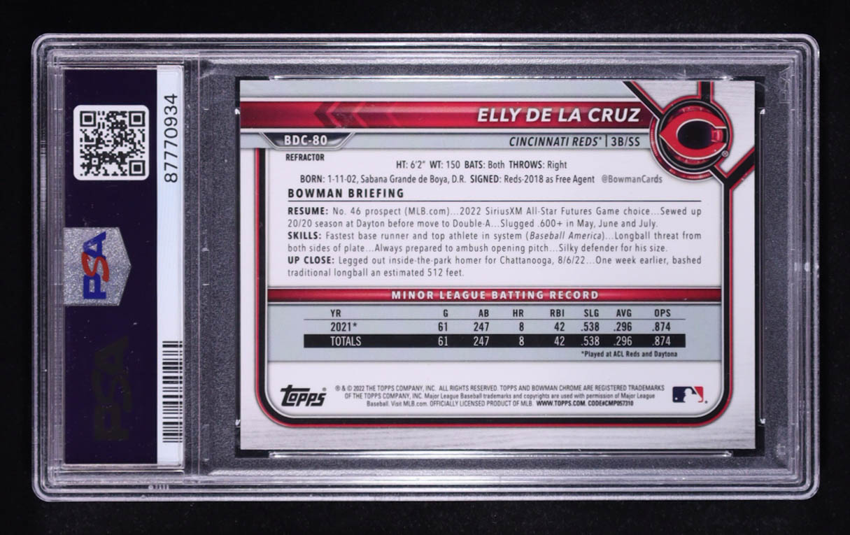 Elly De La Cruz 2022 Bowman Chrome Draft Refractors #BDC80 RC (PSA 9)