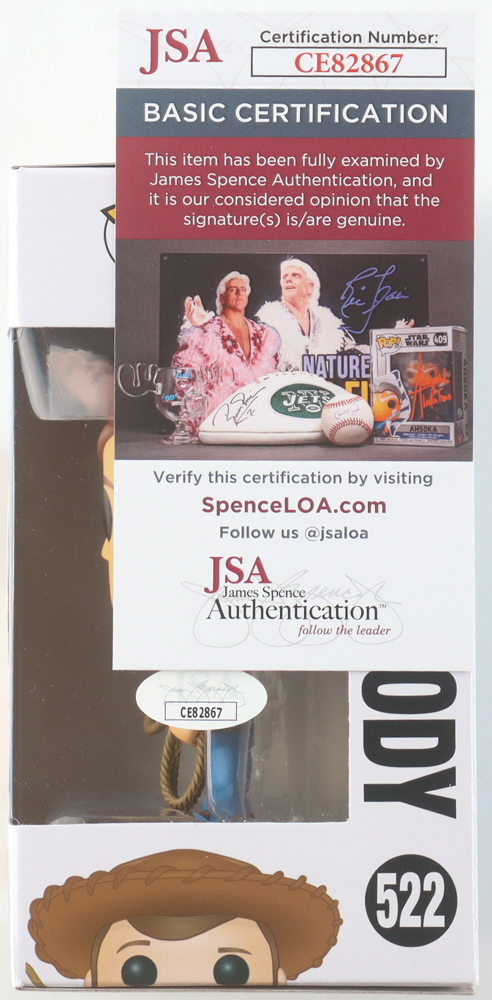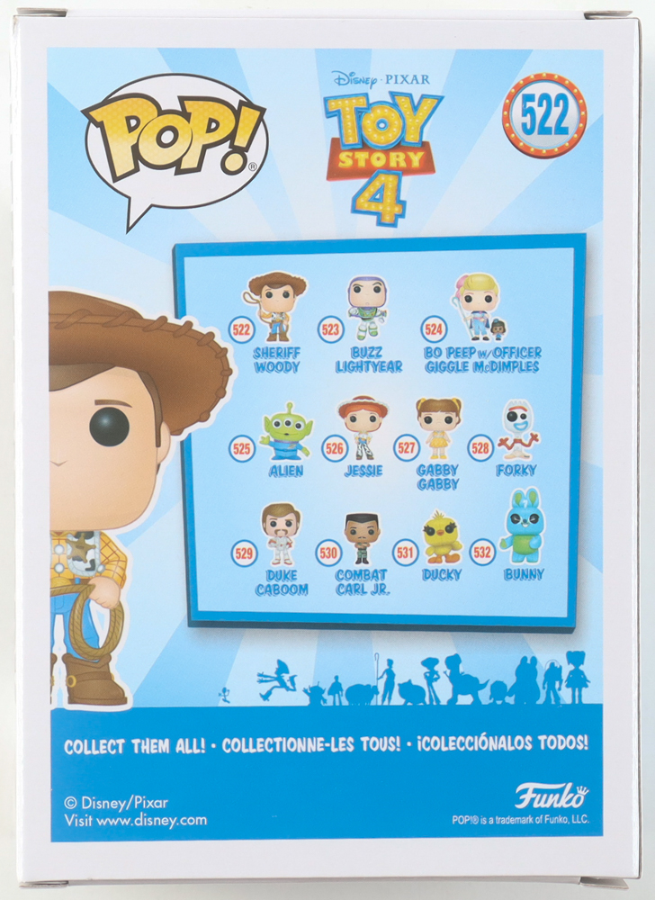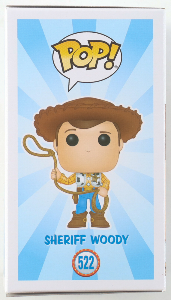 Funko Pop! vinyl figure measures approximately 4" in height. Hand-signed on the packaging by Tom Hanks (Woody). Please note, the packaging window has been swapped.