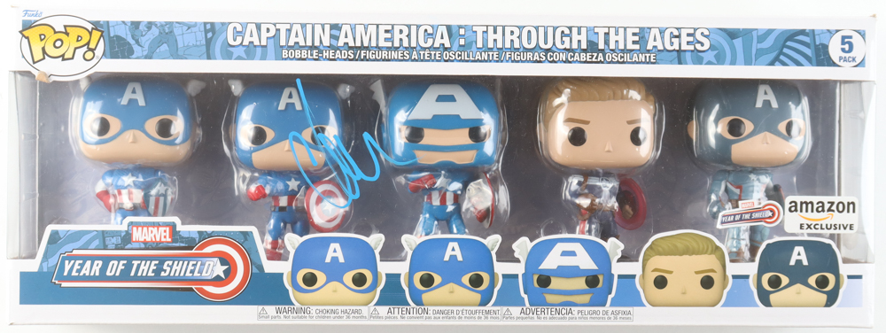 Chris Evans Signed "Captain America: Through The Ages" Year Of The Shield Funko Pop! 5-Pack Bobble-Head Figure Set (JSA)