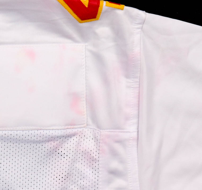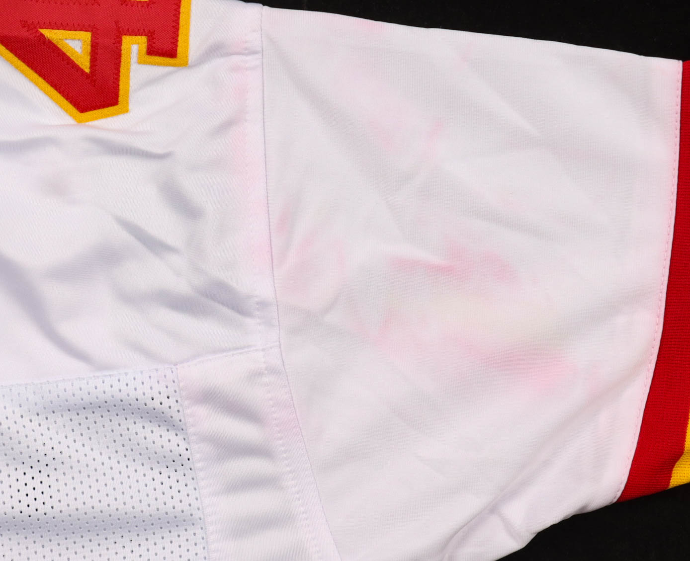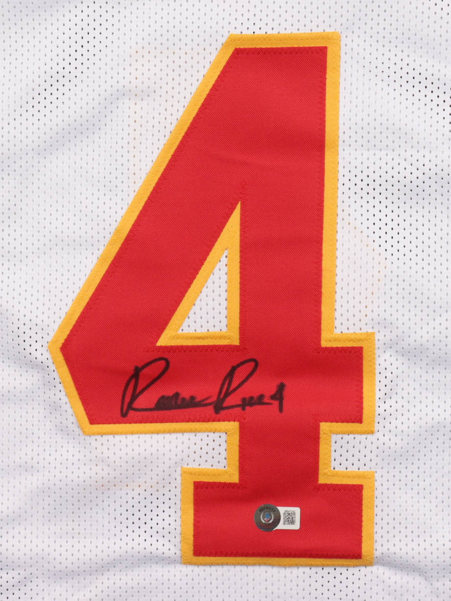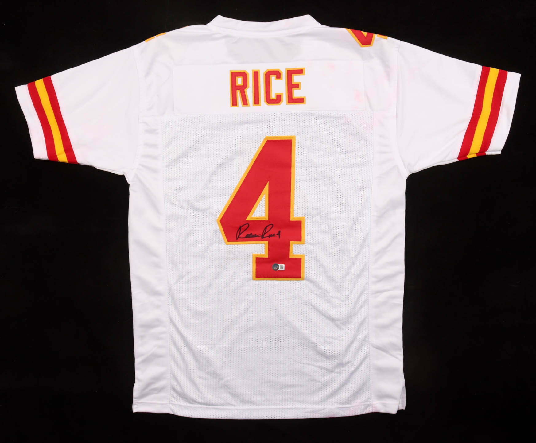 Custom jersey with everything sewn on, size XL. Hand-signed by Rashee Rice. Please note, there is red staining throughout the jersey and the signature has bled. See photos regarding the condition of the item.