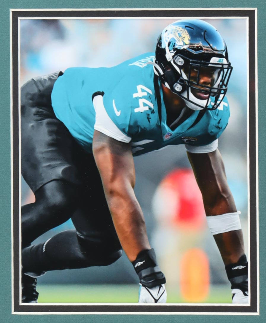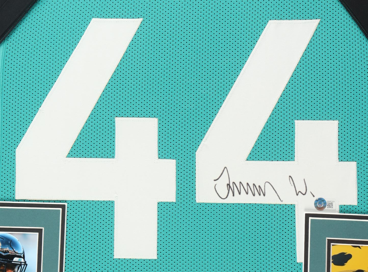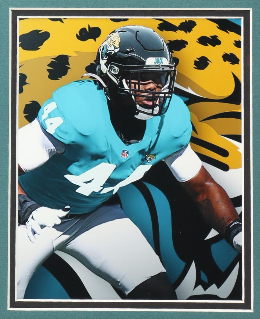 Custom frame measures 35" x 38" in size and features a jersey that has been hand-signed by Fred Taylor.