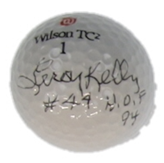 Wilson golf ball has been hand-signed and inscribed by Leroy Kelly (Cleveland Browns, HOF).