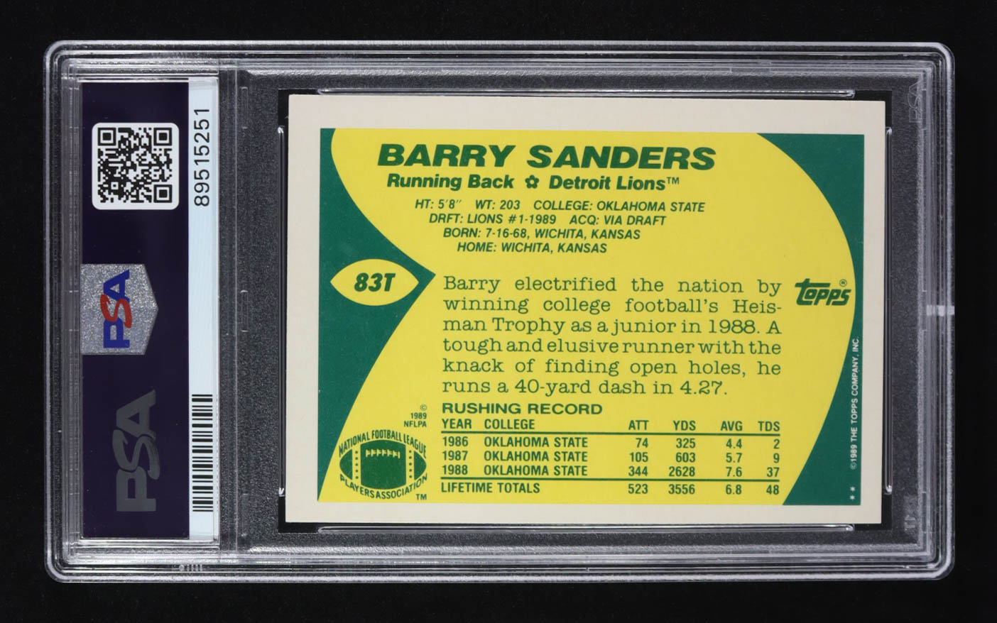 Barry Sanders 1989 Topps Traded #83T RC (PSA 8)