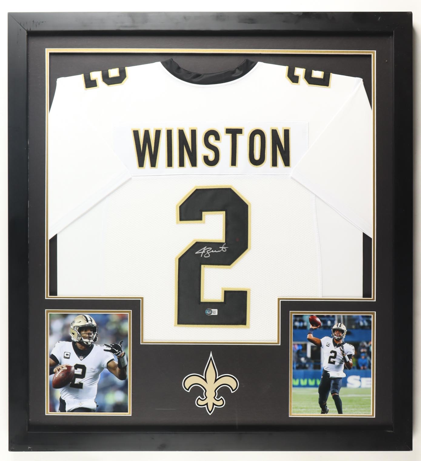 Custom frame measures approximately 35" x 38" in size and features a jersey that has been hand-signed by Jameis Winston.