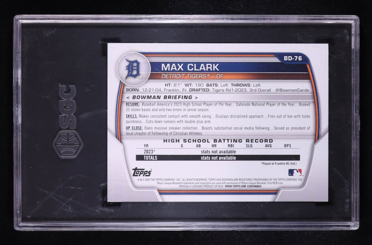 Max Clark 2023 Bowman Draft #BD76 RC (SGC 10)