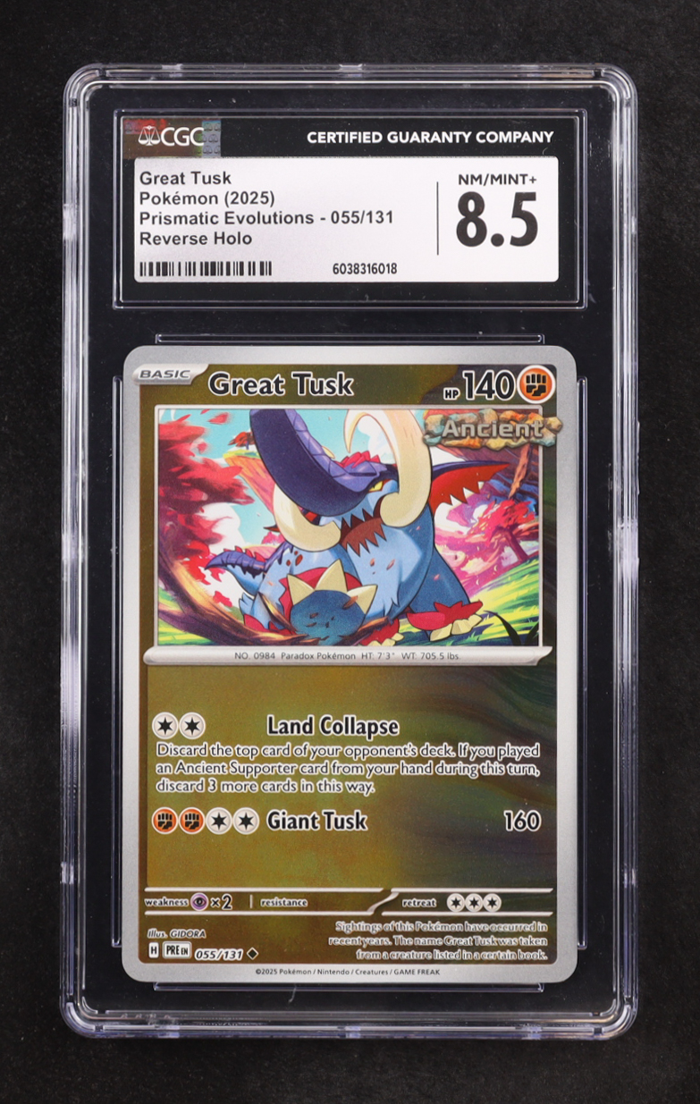 Great Tusk 2025 Pokemon Prismatic Evolutions #55 Reverse Holo (CGC 8.5)