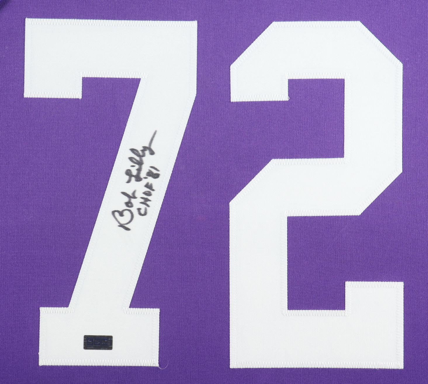 Custom frame measures approximately 31" x 39" in size and features a custom jersey that has been hand-signed and inscribed by Bob Lily (HOF).