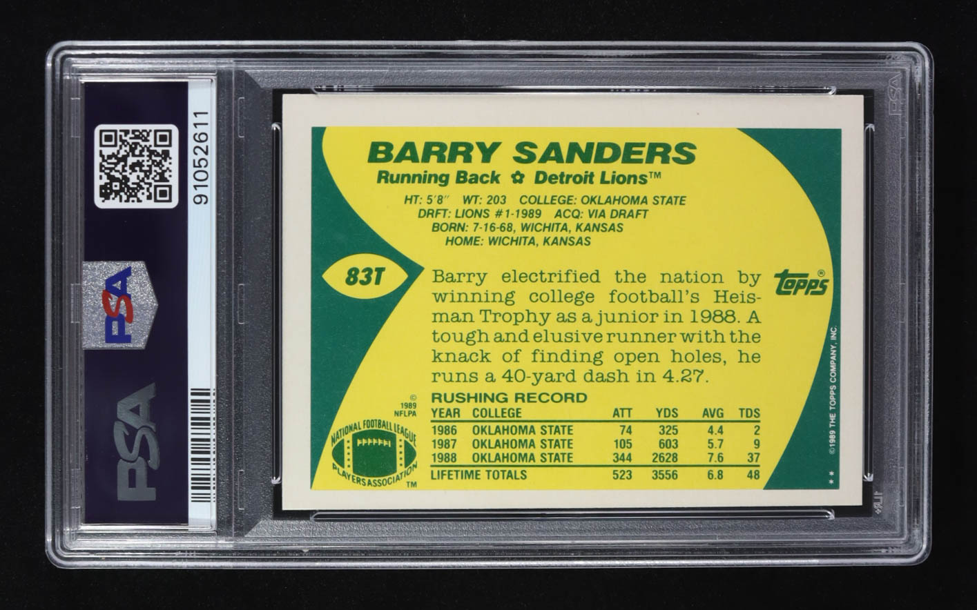 Barry Sanders 1989 Topps Traded #83T RC (PSA 8)