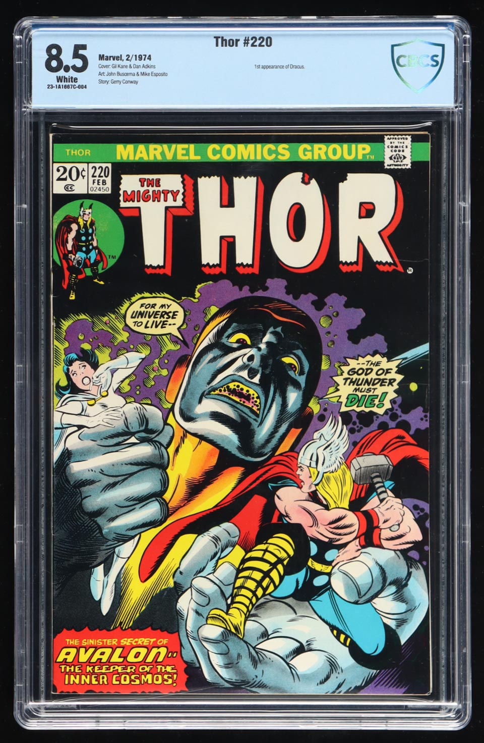 "The Mighty Thor" 1974 Issue #220 Marvel comic book has been graded CBCS 8.5. Please see photos for details regarding the condition of the comic.