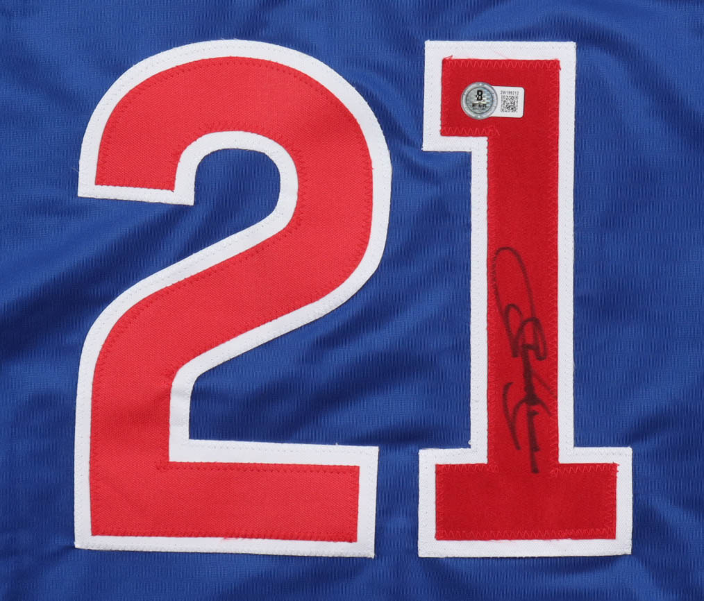Custom jersey with everything sewn on, size XL. Hand-signed by Sammy Sosa.