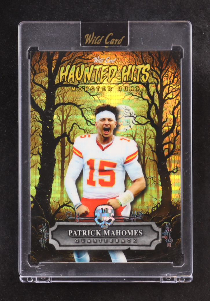 Patrick Mahomes II 2025 Wild Card Haunted Hits Monster Hunt Woods Yellow Pulsar #HHW-PM #1/1