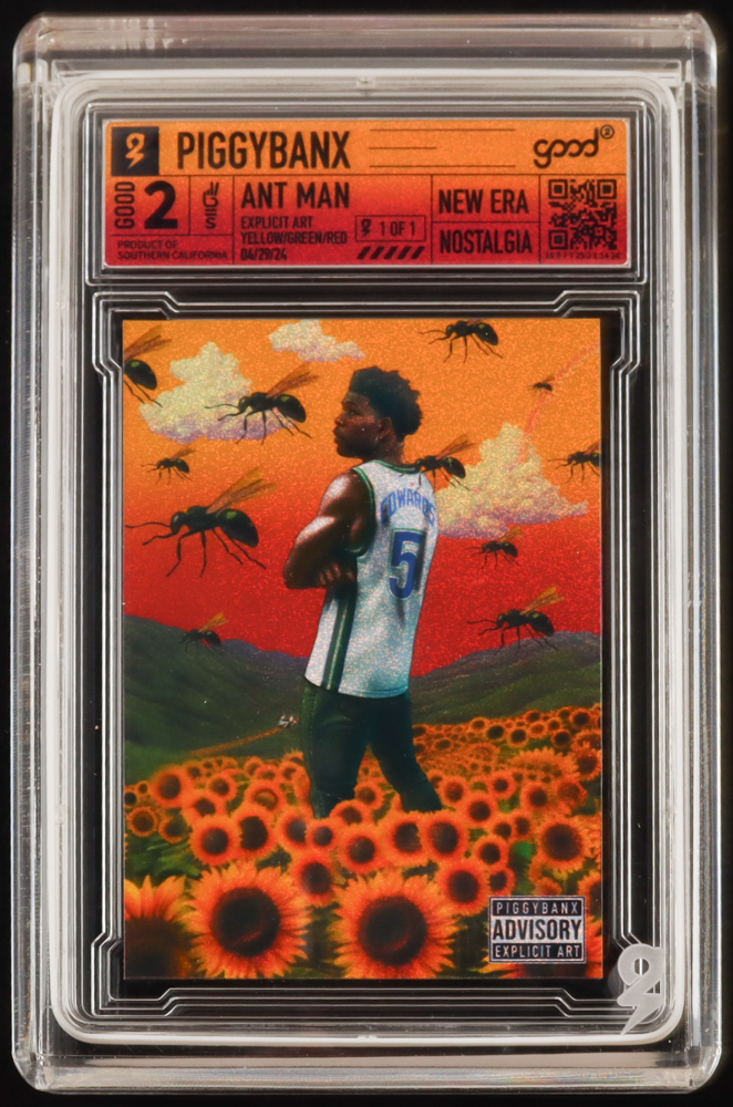 Custom Art Card features Anthony Edwards (Minnesota Timberwolves). Card is signed and numbered by the artist, Piggybanx. Please see photos for details regarding the condition of the card.
