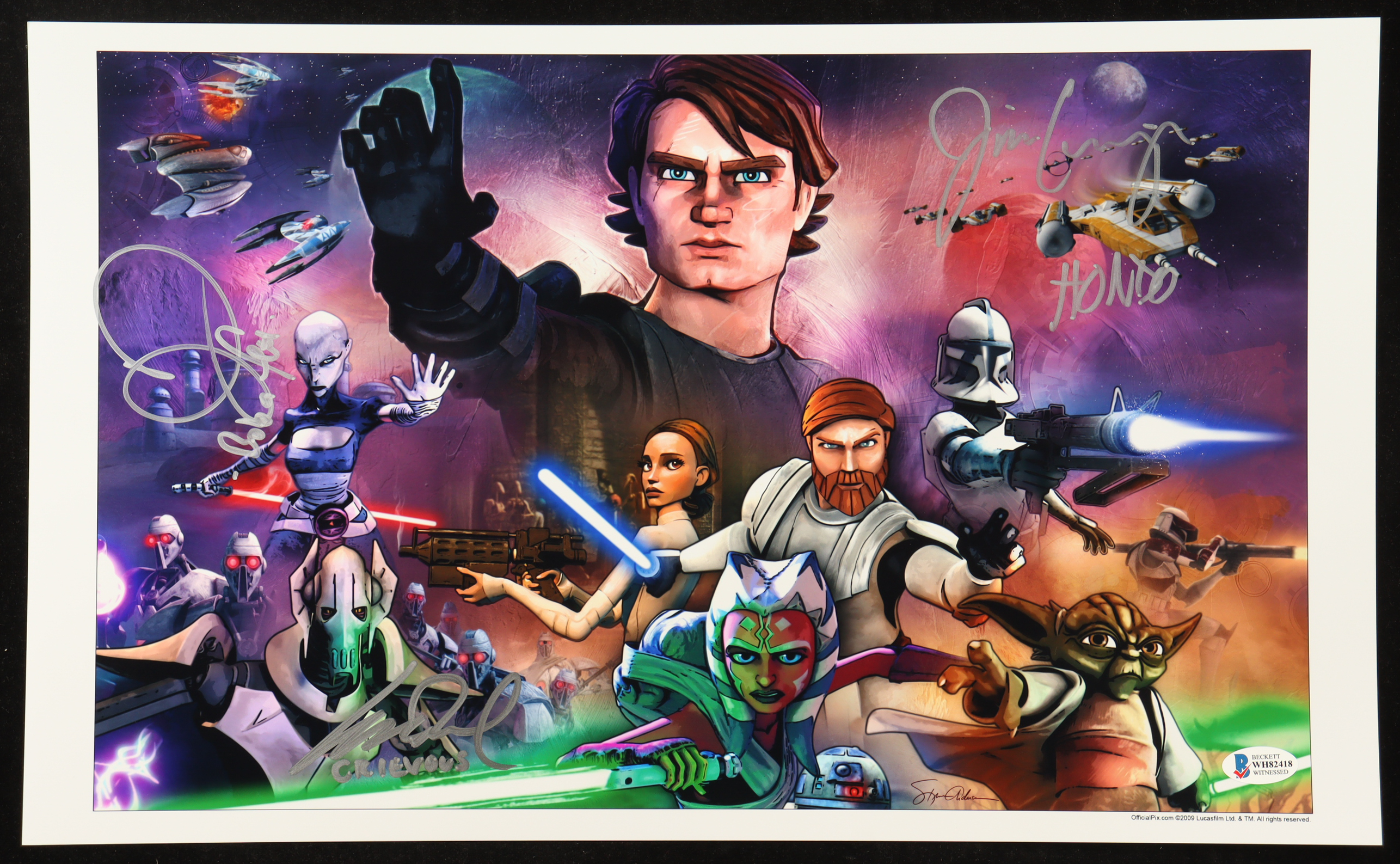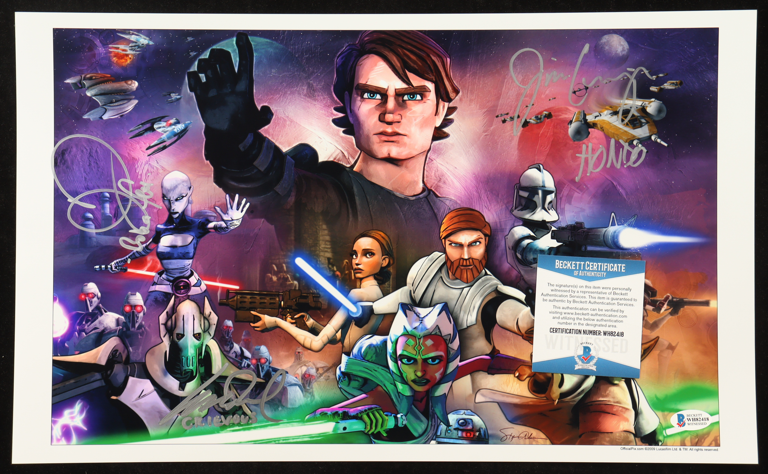 Daniel Logan, Jim Cummings & Matthew Wood Signed "Star Wars: The Clone Wars" 11x17 Photo with Character Inscriptions (Beckett)