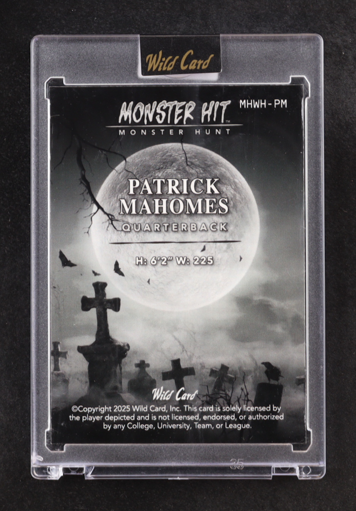 Patrick Mahomes II 2025 Wild Card Monster Hit Monster Hunt Witch House Orange Lazer #MHWH-PM #1/1