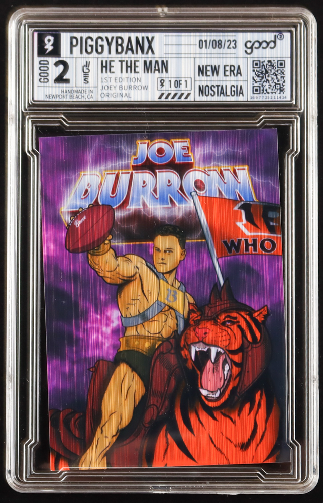 Joe Burrow 2023 PiggyBanx - New Era Nostalgia "He The Man" Plated 1st Edition #1/1