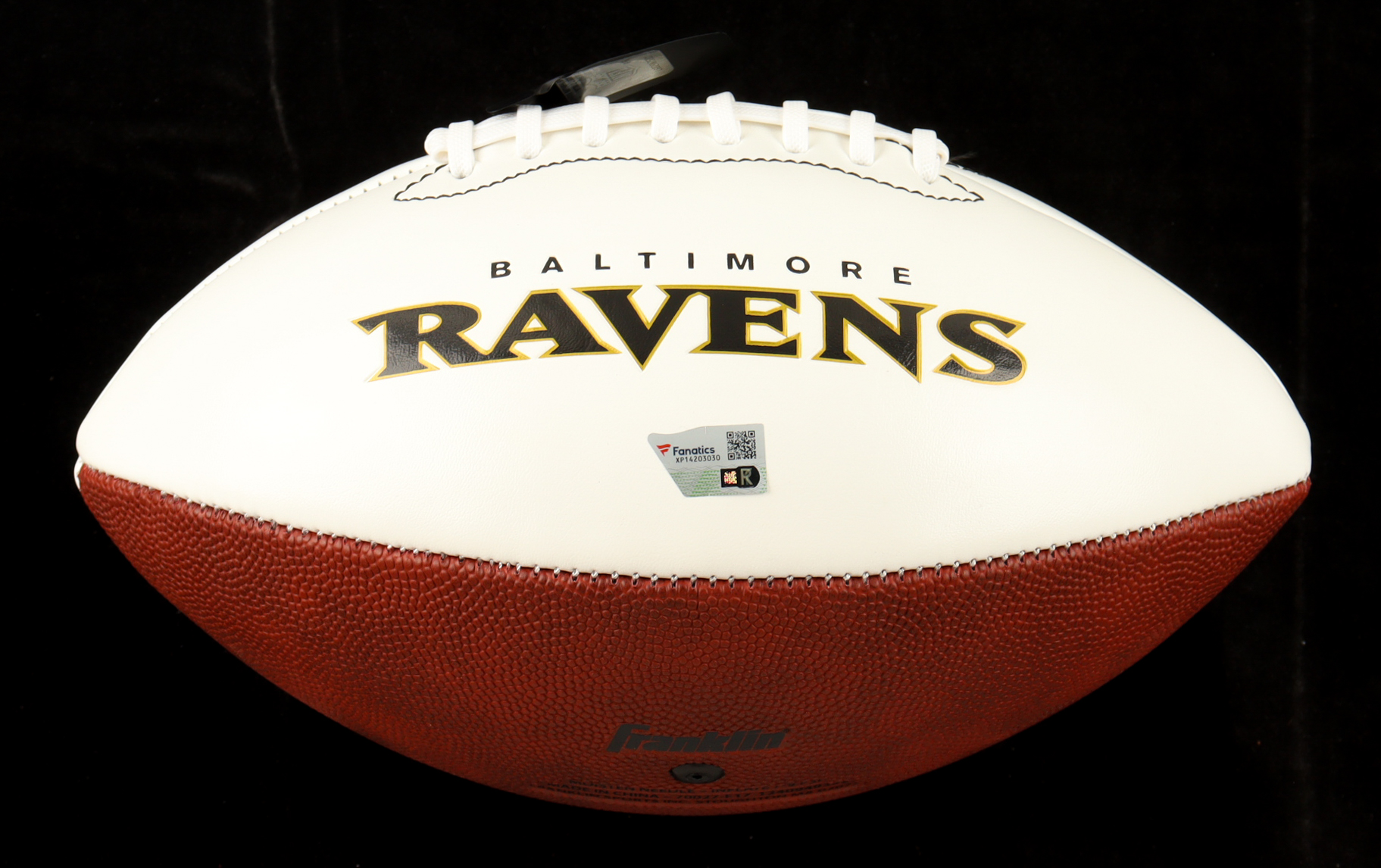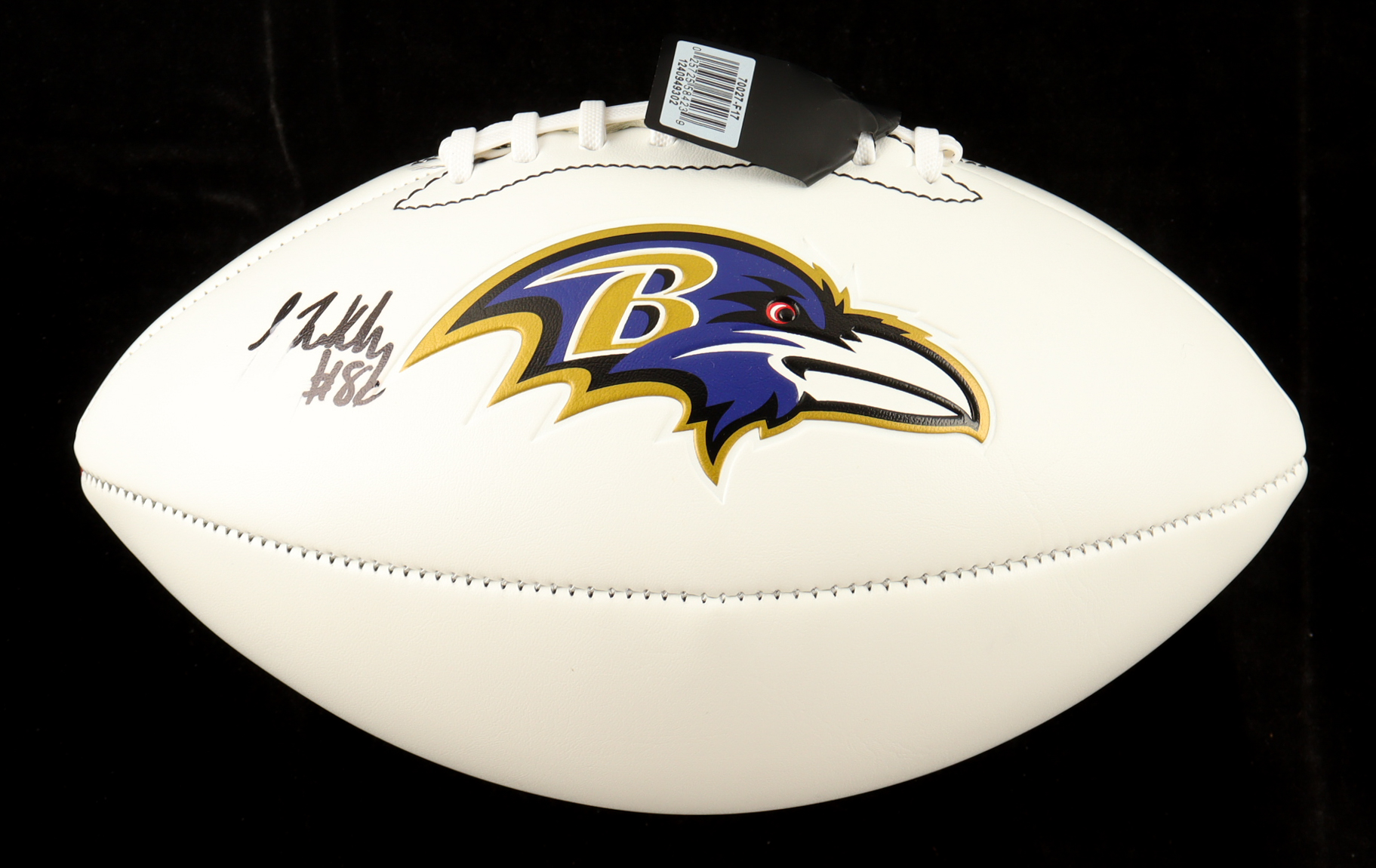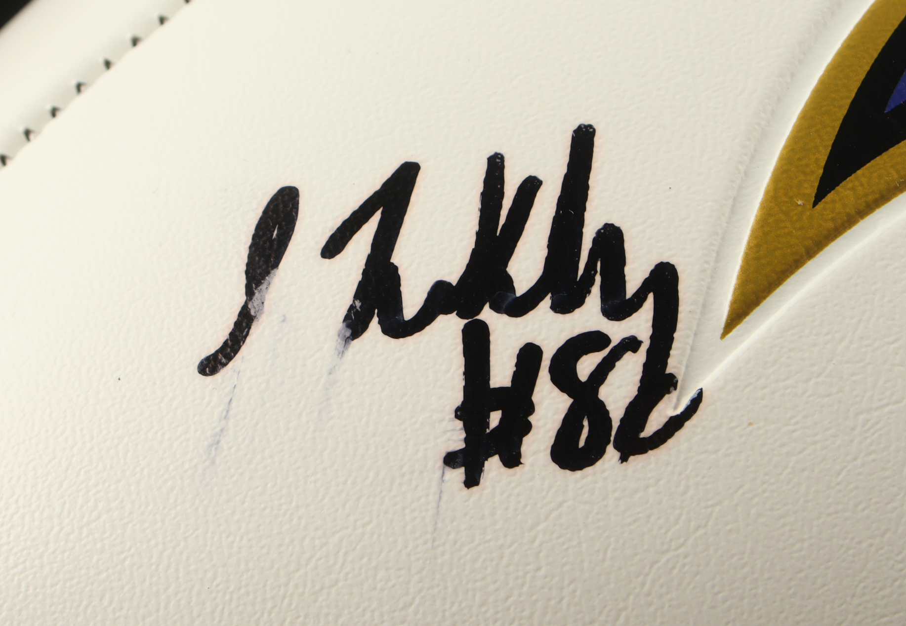 Baltimore Ravens logo football has been hand-signed by Isaiah Likely. Please note that the signature is slightly smeared.