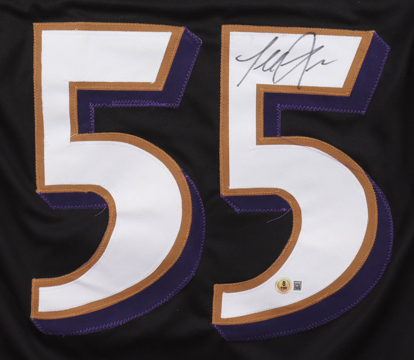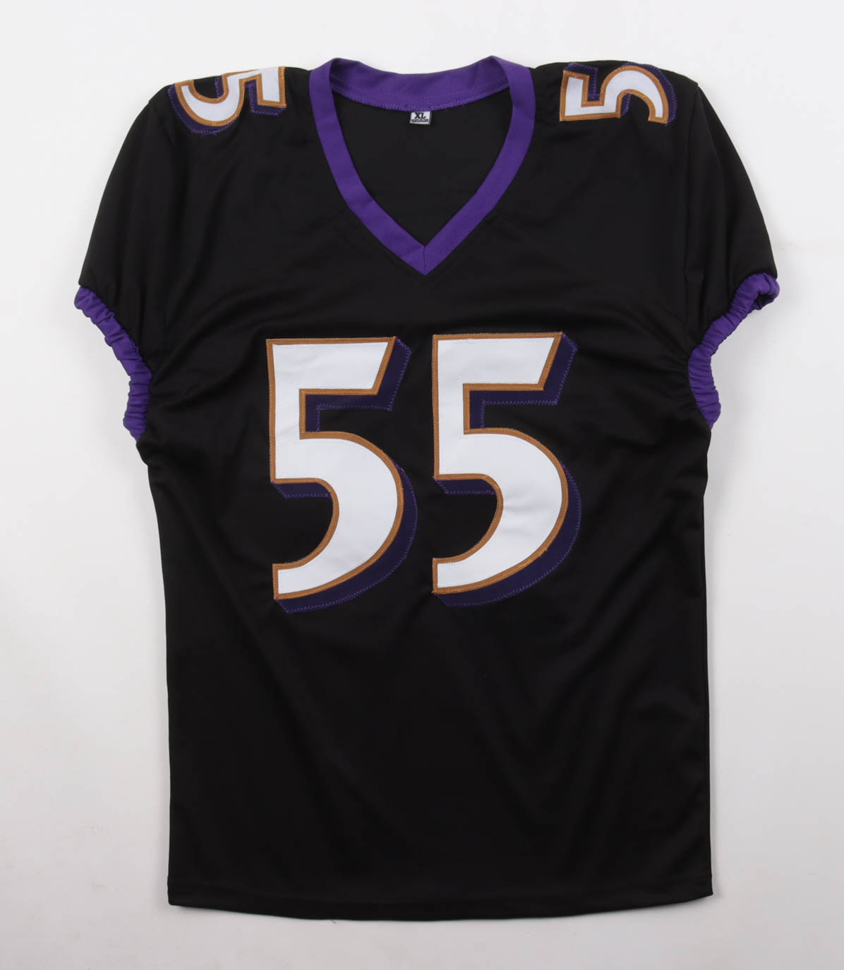 Custom jersey with everything sewn on, size XL. Hand-signed by Terrell Suggs.
