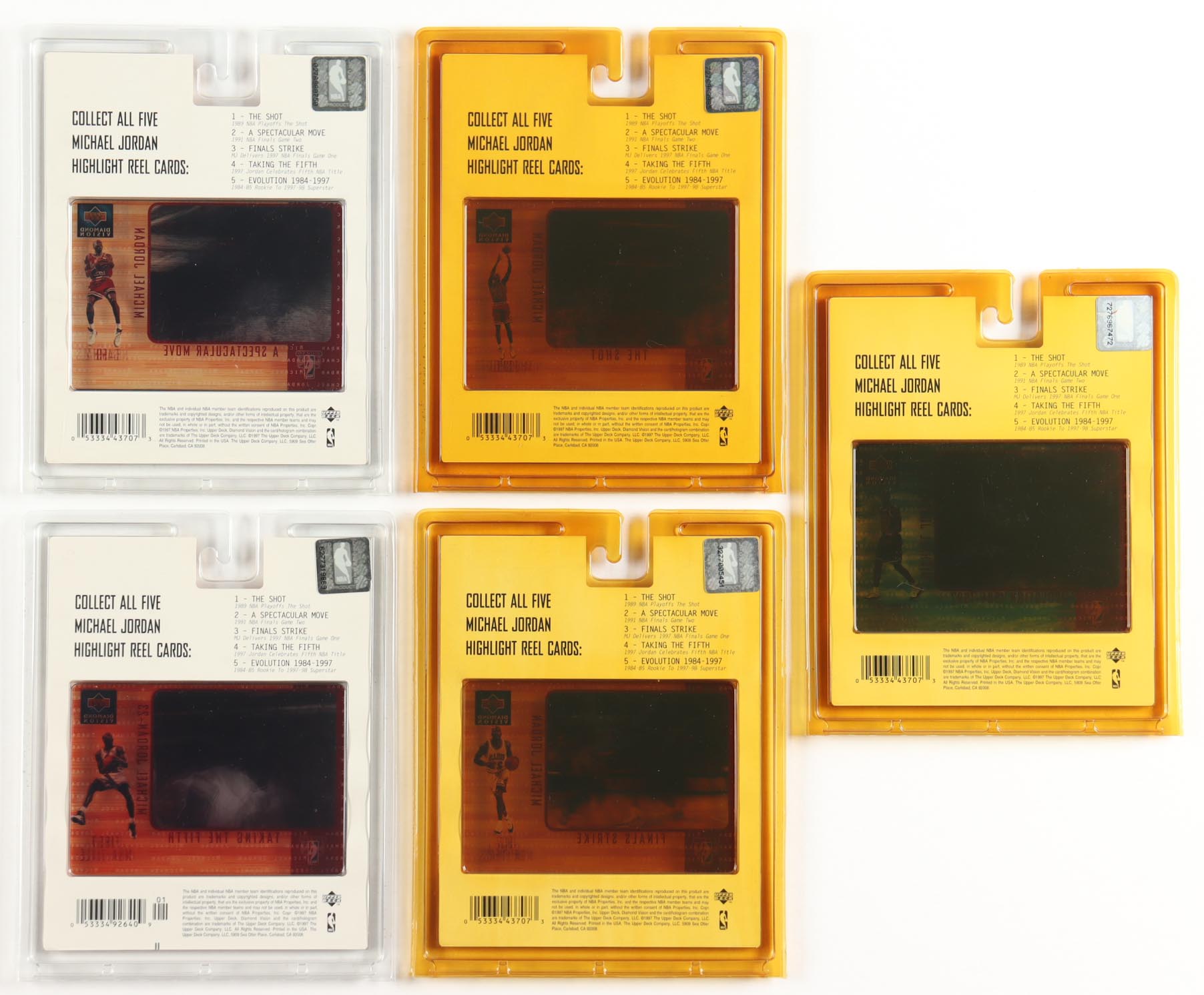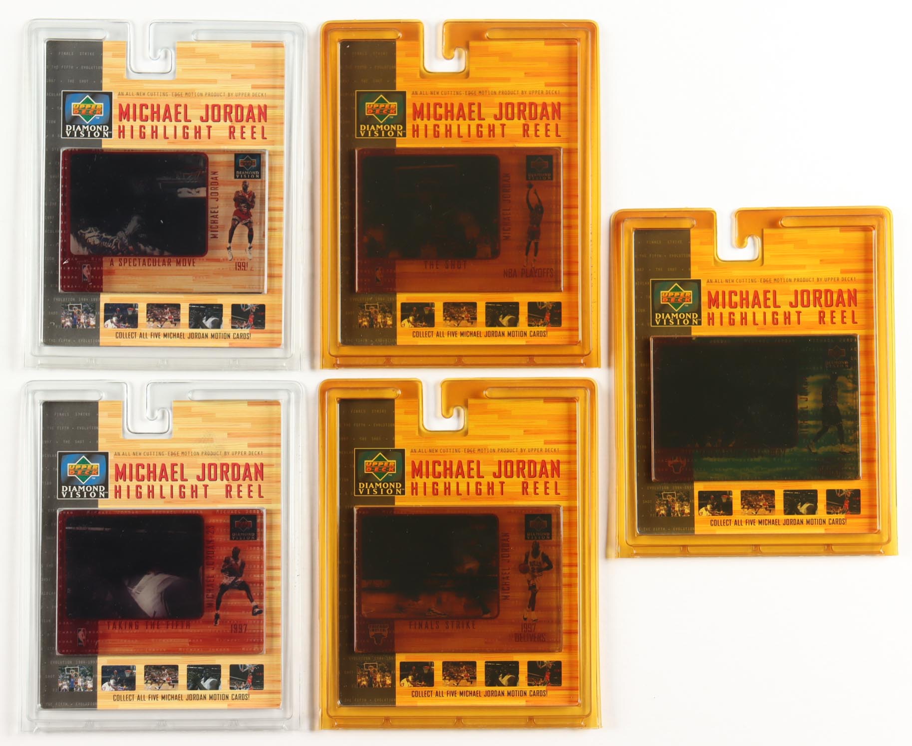 Michael Jordan 1997-98 Upper Deck Diamond Vision Jordan Highlight Reels Complete Set of (5) Jumbo Cards