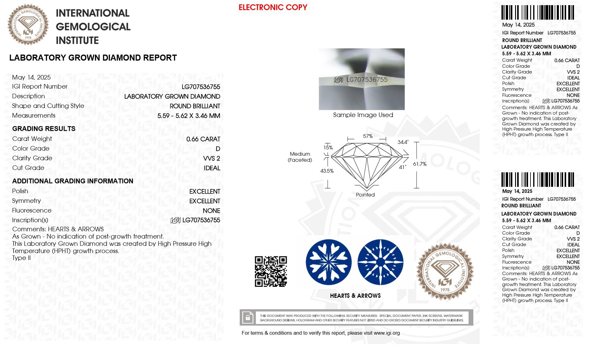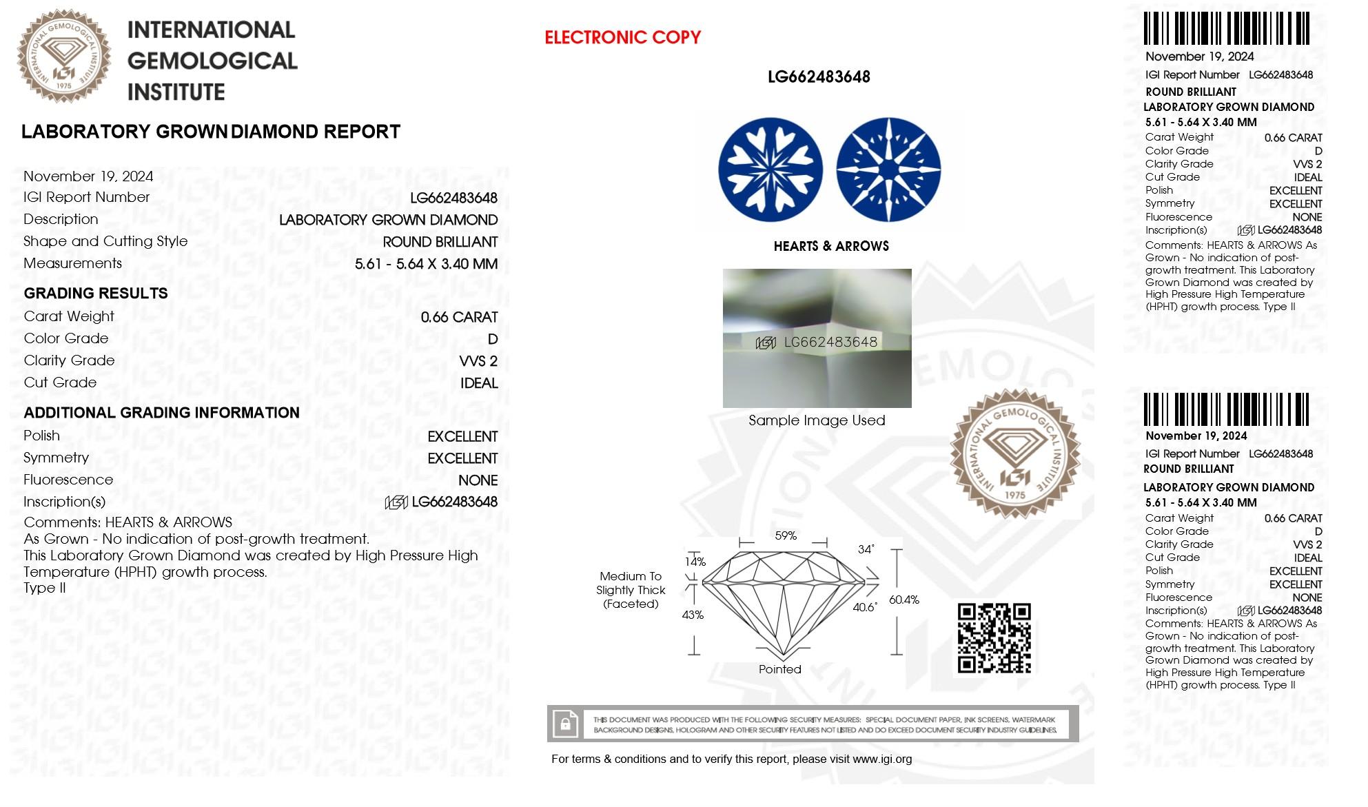 The diamonds feature precision laser inscriptions with the IGI certificate numbers, ensuring authenticity and traceability.