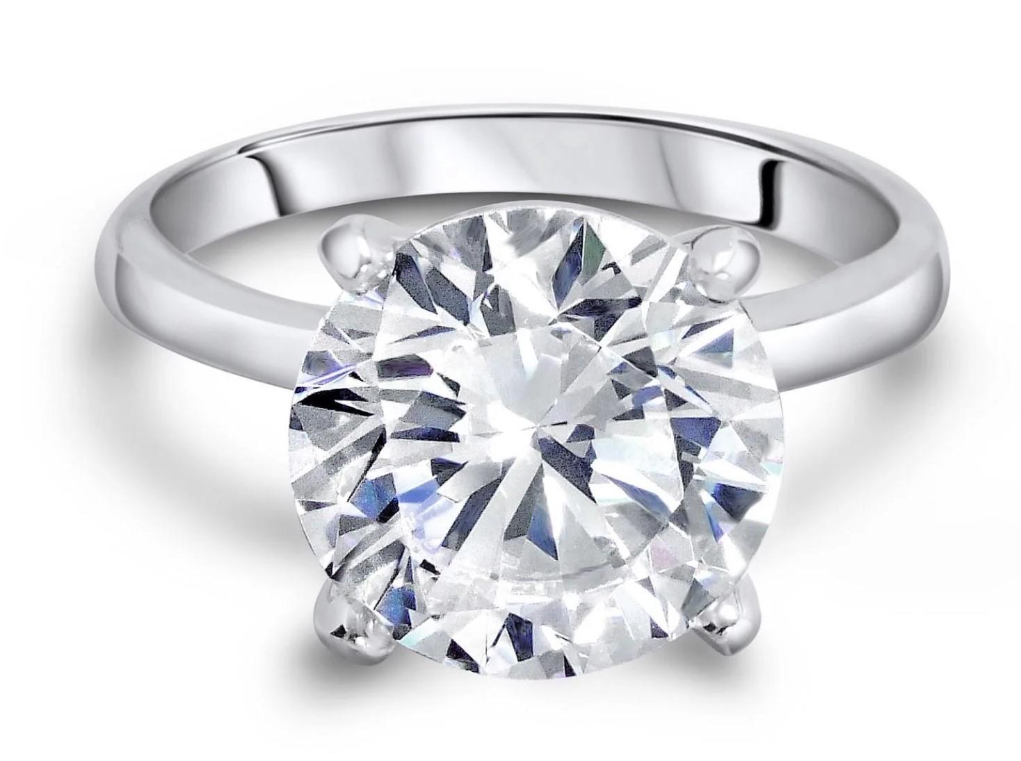 One New Round Brilliant Cut Diamond Solitaire Ring. Mounting is Made of Sterling Silver and a Ring Size 7.