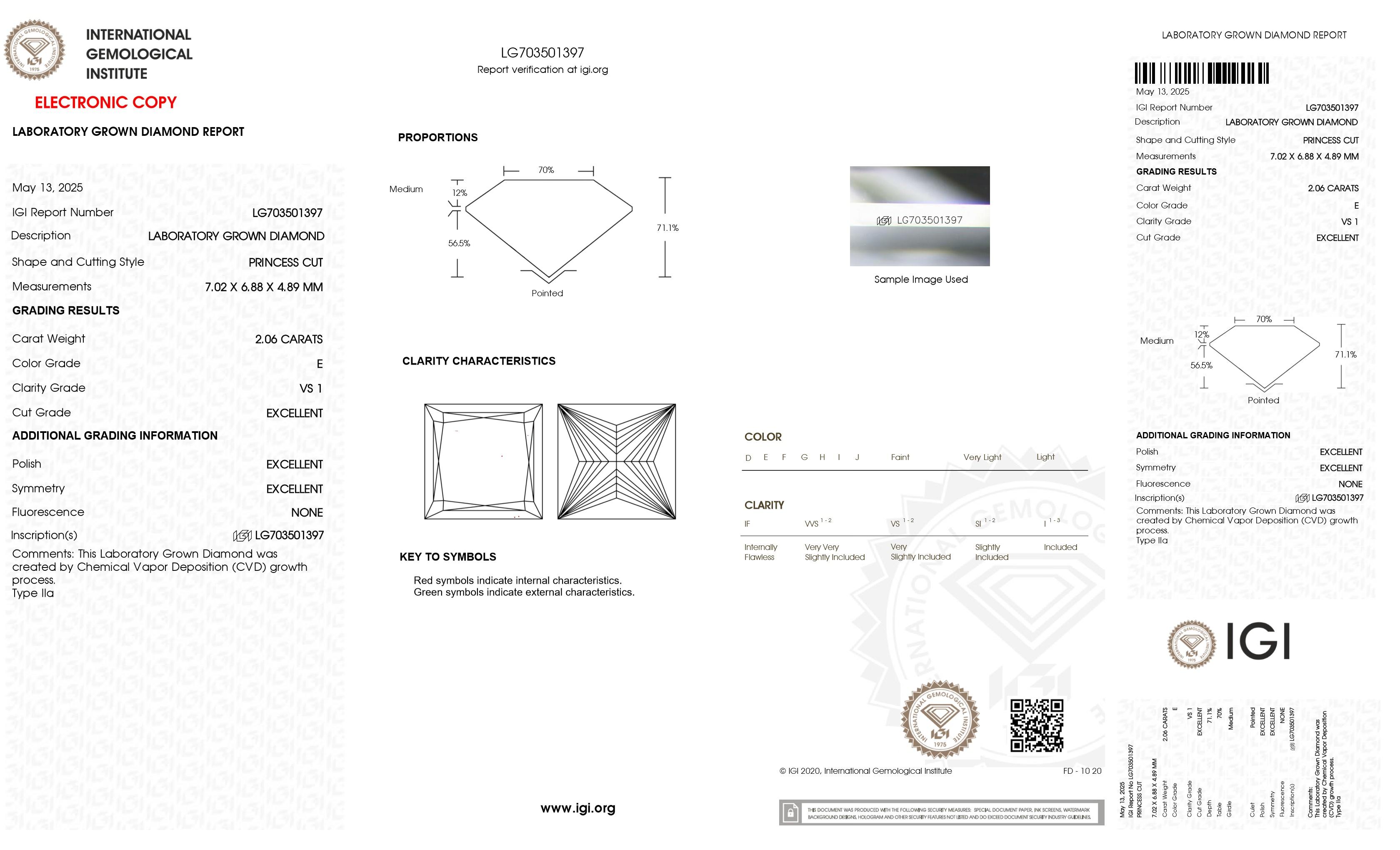 The diamonds feature precision laser inscriptions with the IGI certificate numbers, ensuring authenticity and traceability.