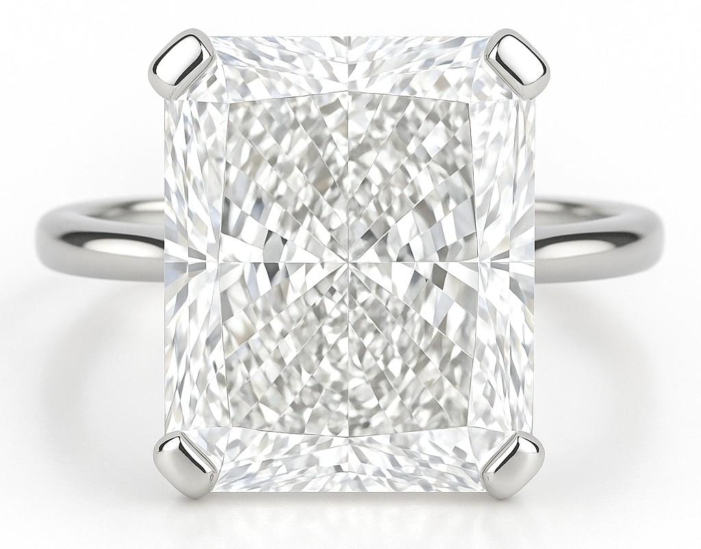 One New Radiant Cut Diamond Solitaire Ring. Mounting is Made of Sterling Silver and a Ring Size 7.