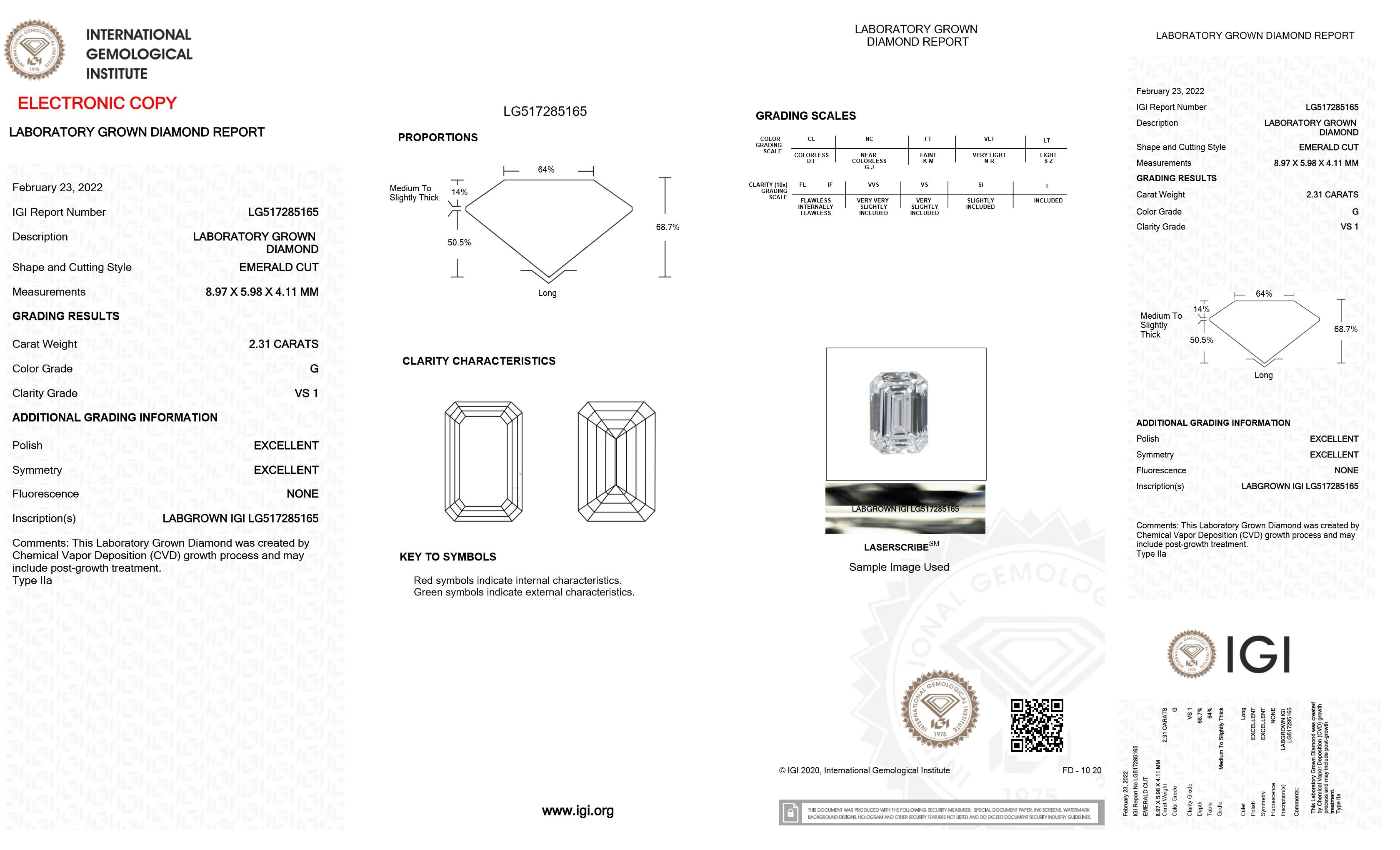 The diamonds feature precision laser inscriptions with the IGI certificate numbers, ensuring authenticity and traceability.