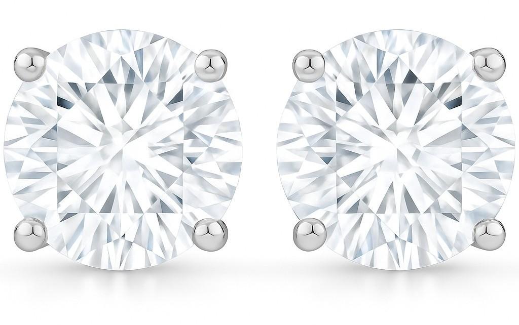 One Pair Round Brilliant Diamond Stud Earrings. Set In Platinum Mountings.
