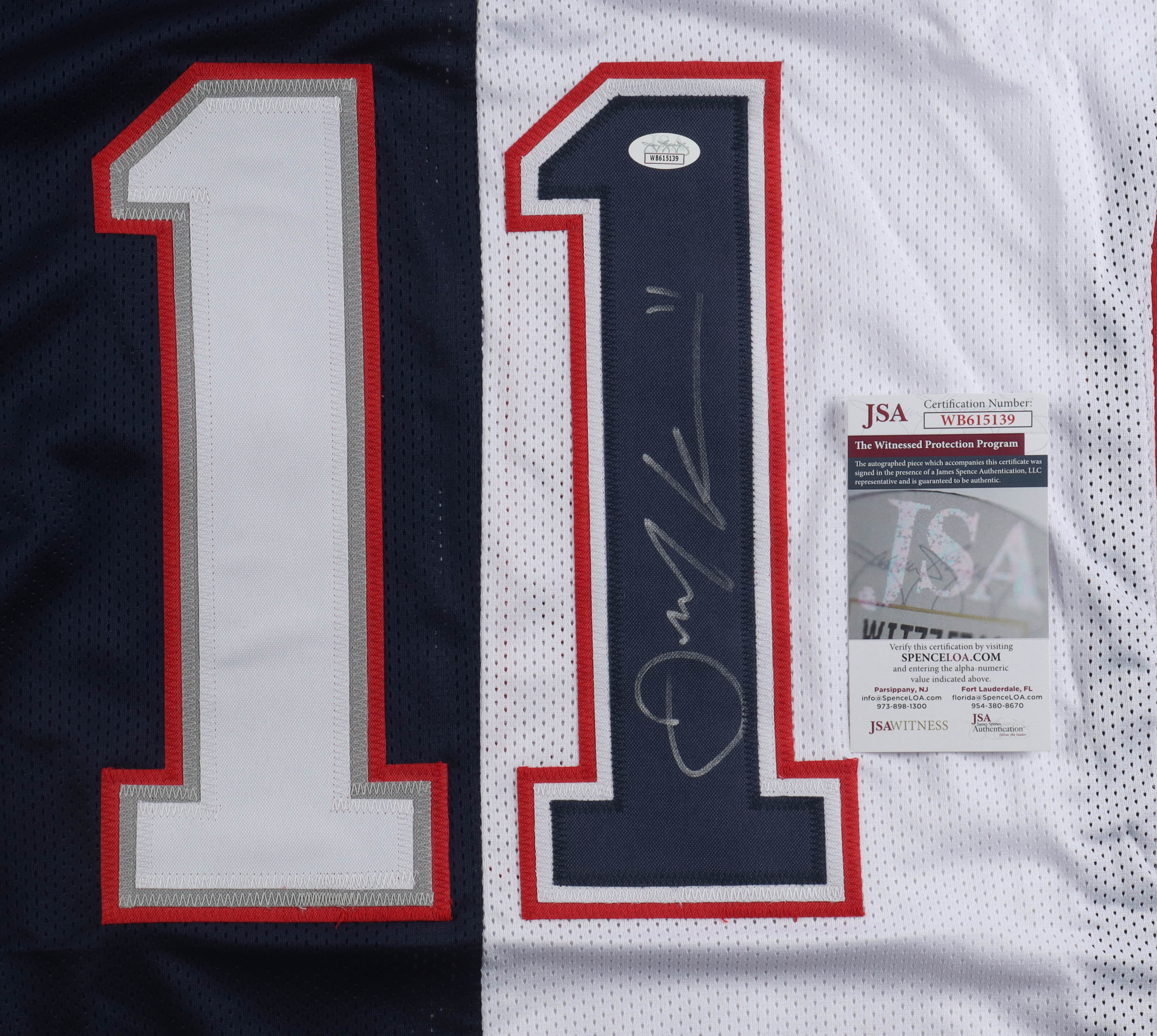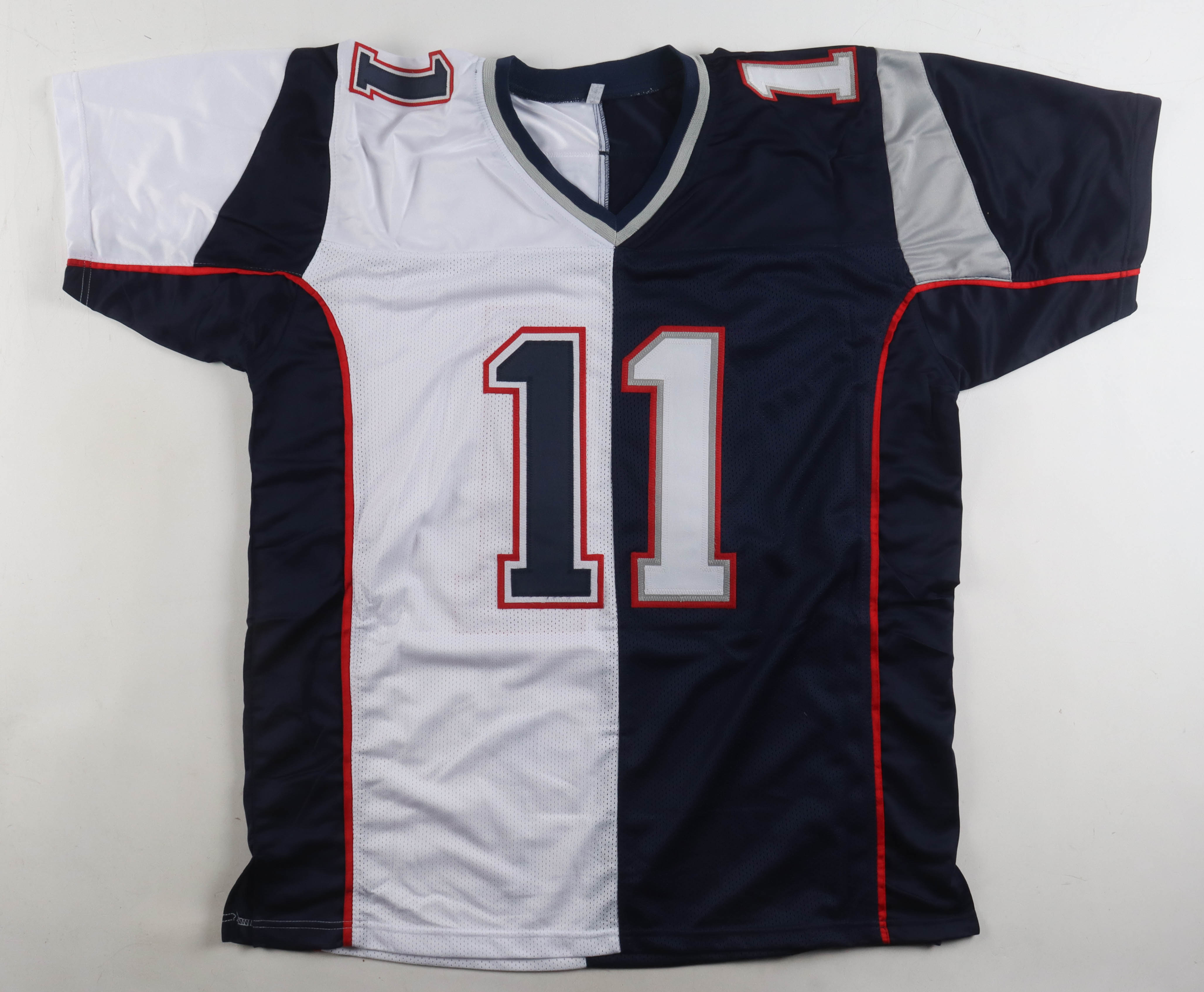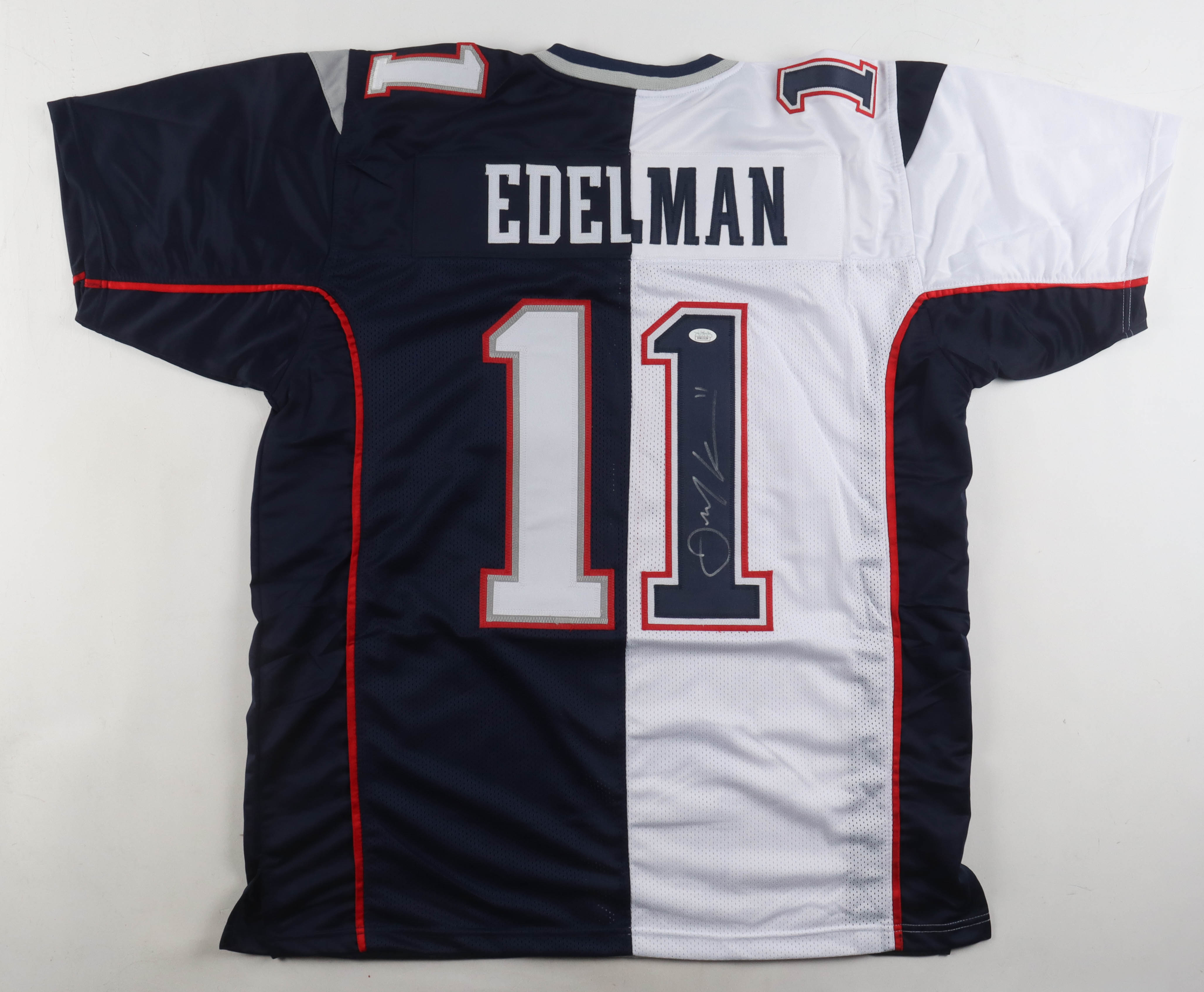 Custom jersey with everything sewn on, size XL. Hand-signed by Julian Edelman.