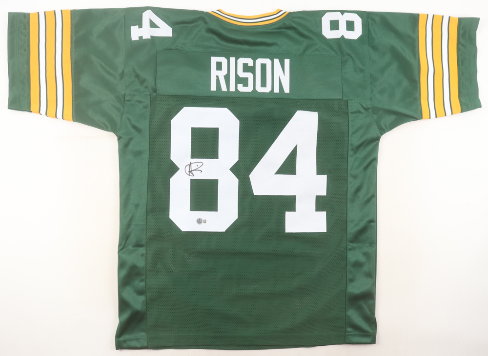 Custom jersey with everything sewn on, size XL. Hand-signed by Andre Rison.
