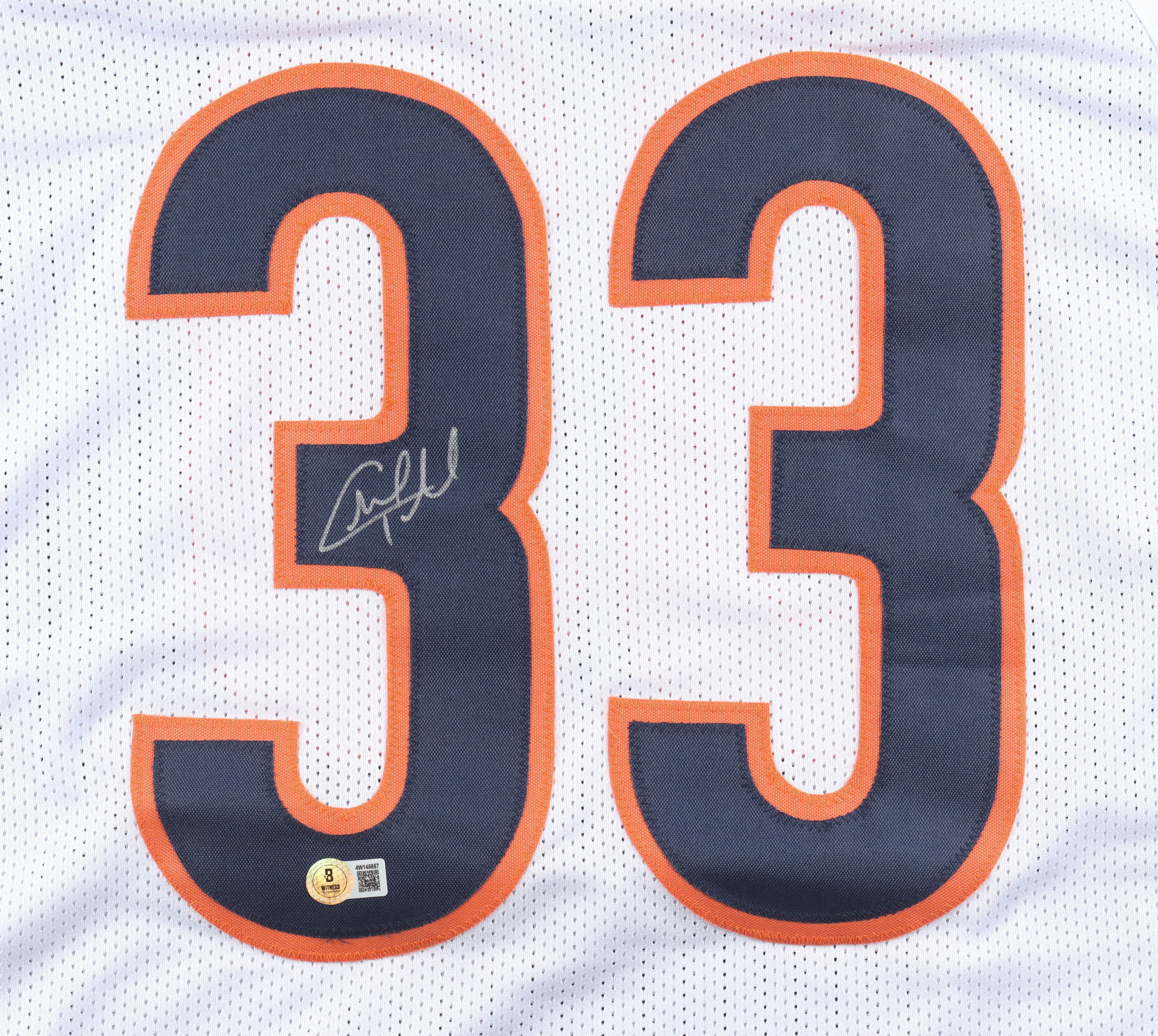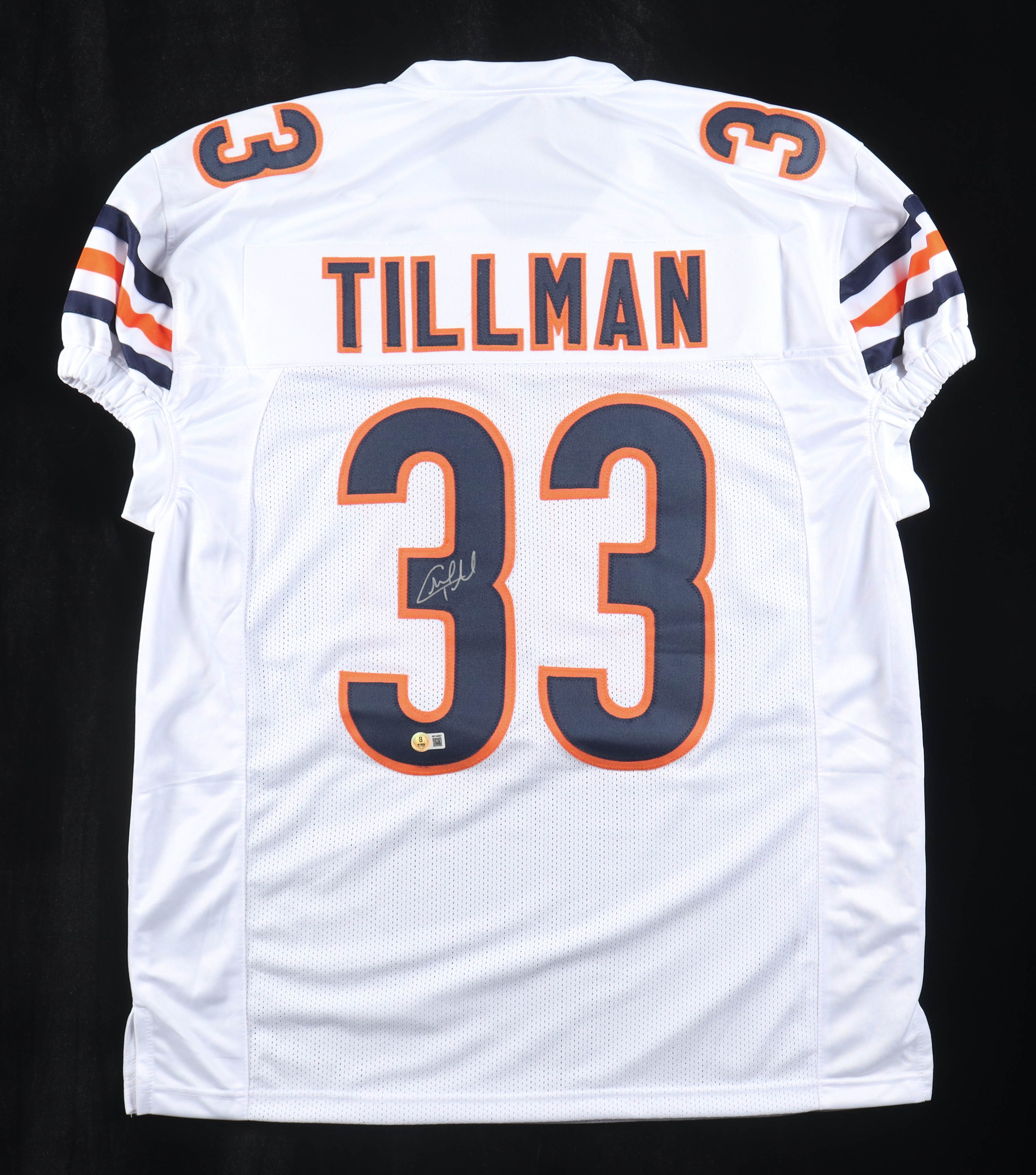 Custom jersey with everything sewn on, size XL. Hand-signed by Charles Tillman.