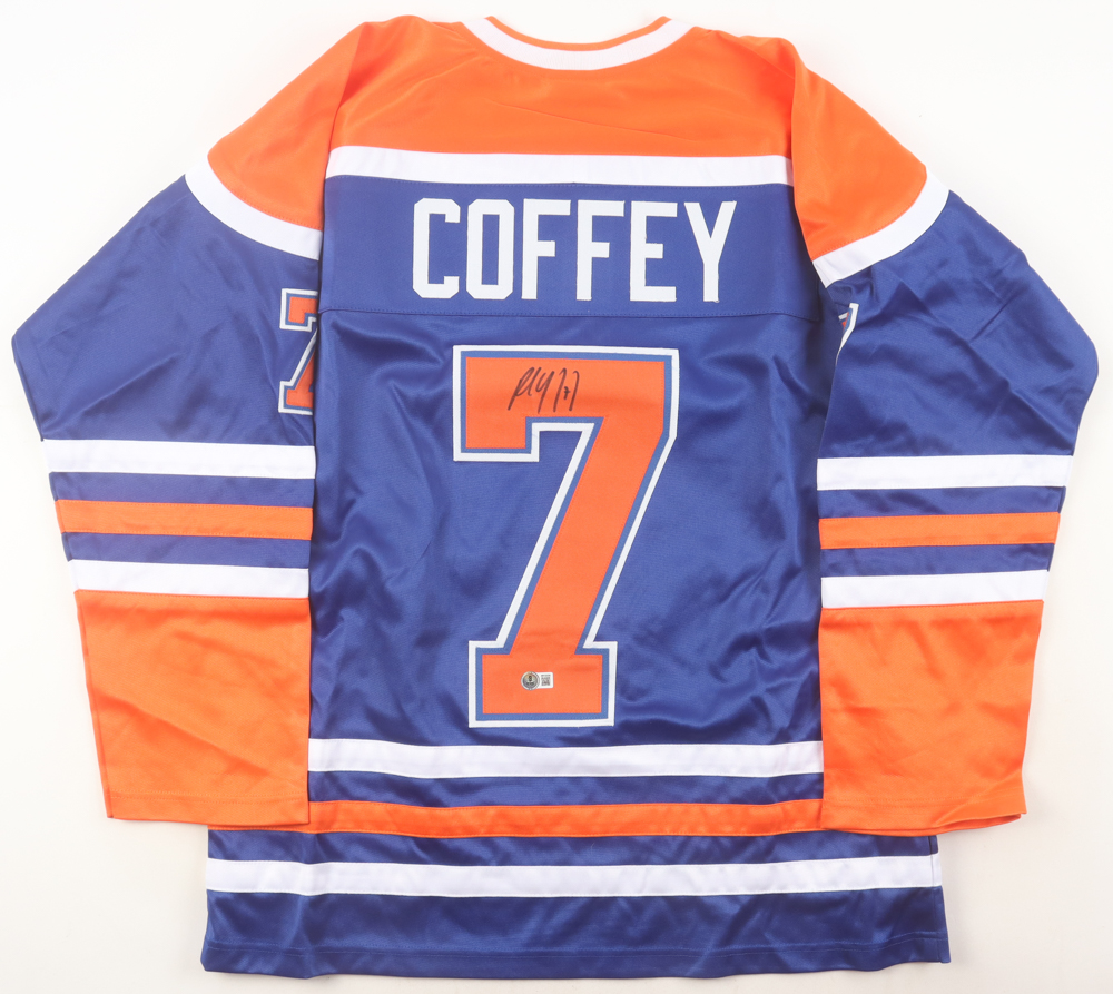 Custom jersey. Everything sewn on, size XL. Hand-signed by Paul Coffey (HOF).