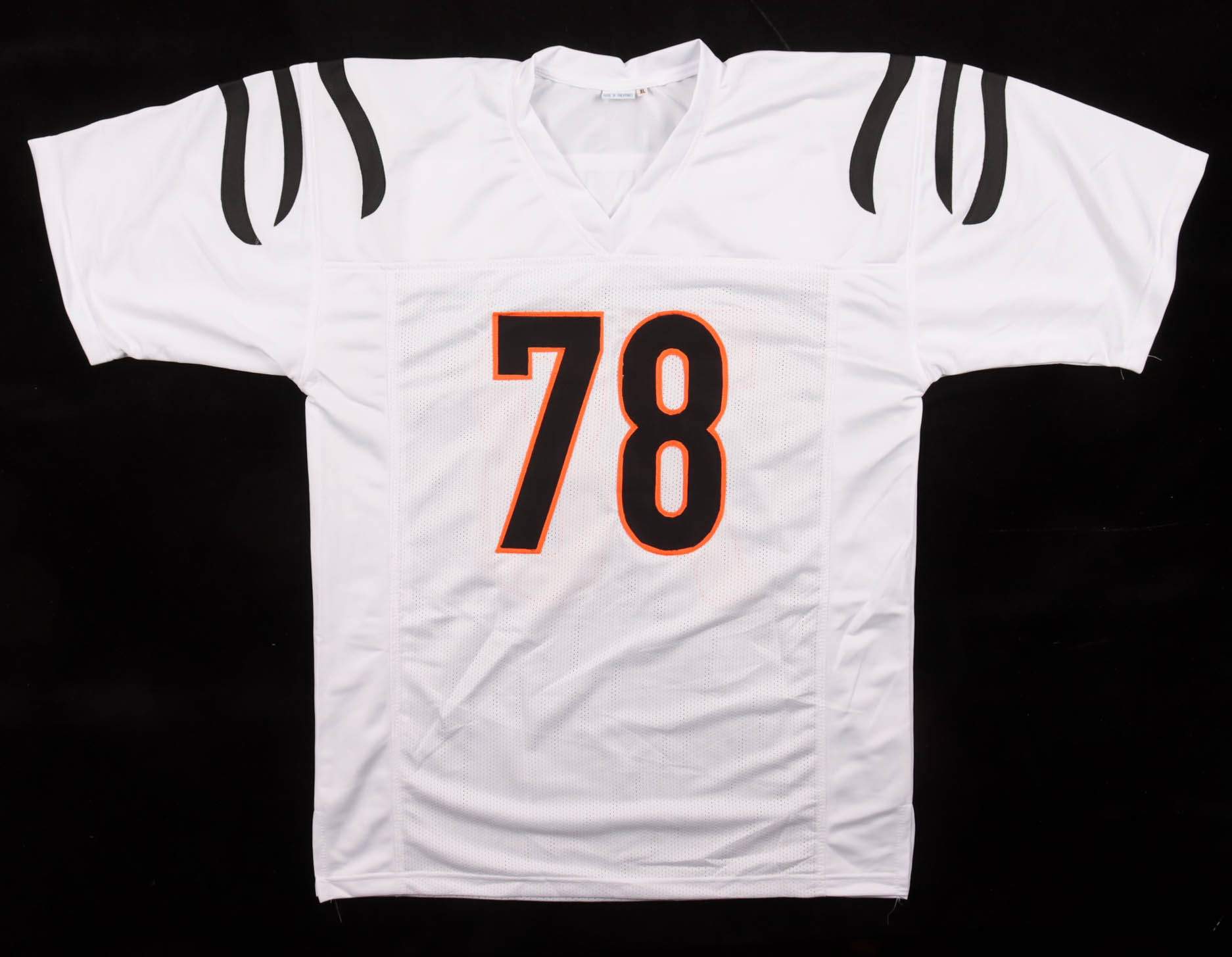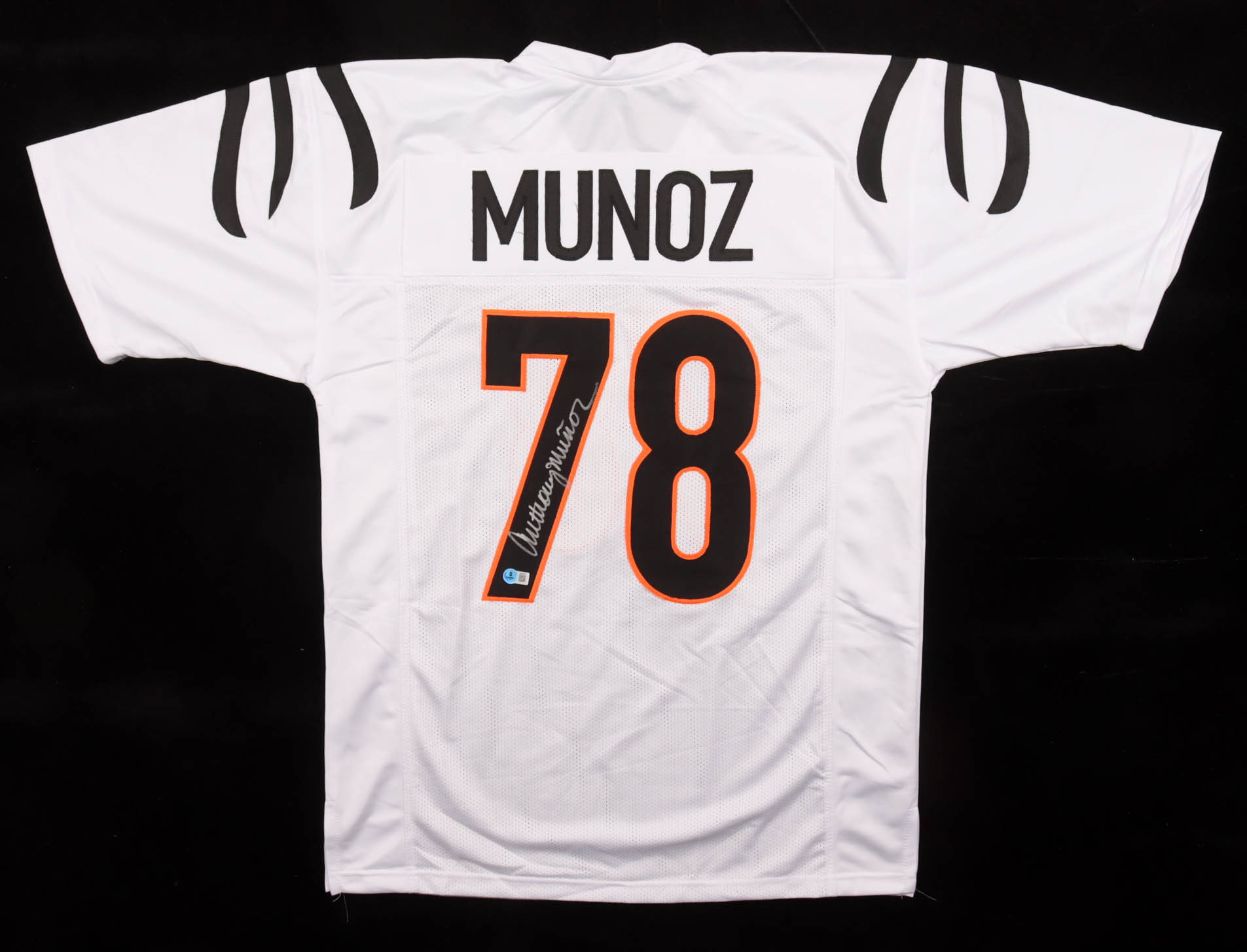 Custom jersey with everything sewn on, size XL. Hand-signed by Anthony Munoz (HOF).