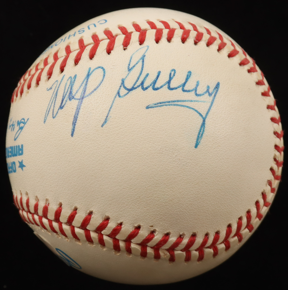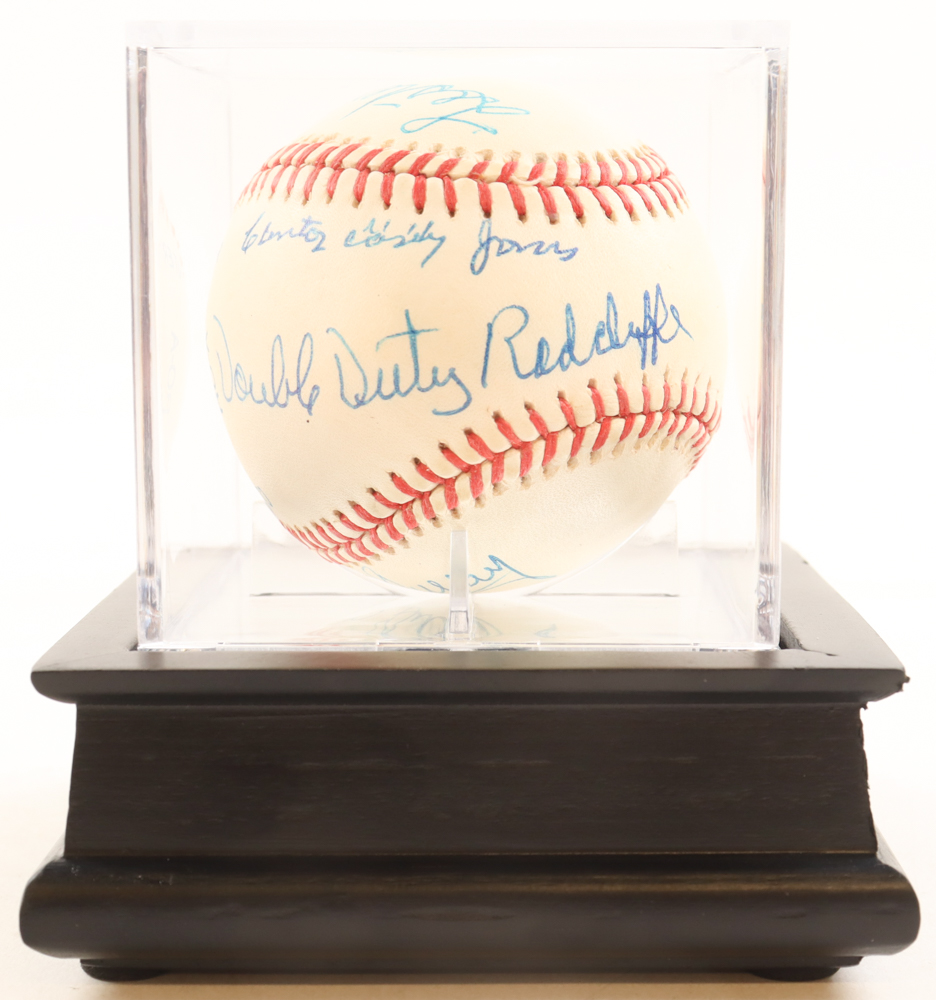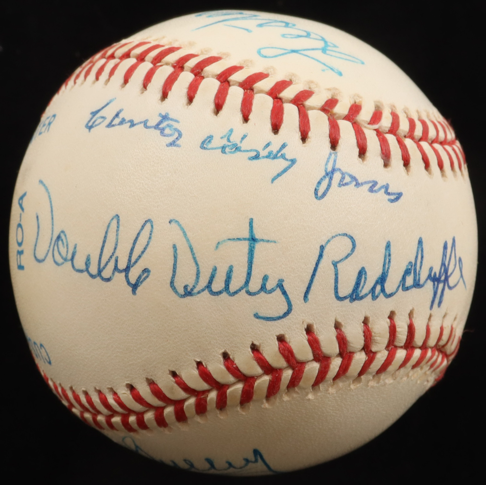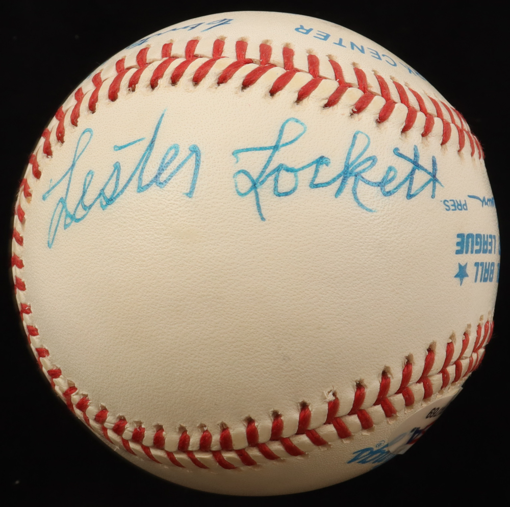 Rawlings Official American League baseball. Hand-signed by Clinton Casey Jones, Nap Gulley, Lester Lockett and Ted "Double Duty Radcliffe". Display case included as shown.