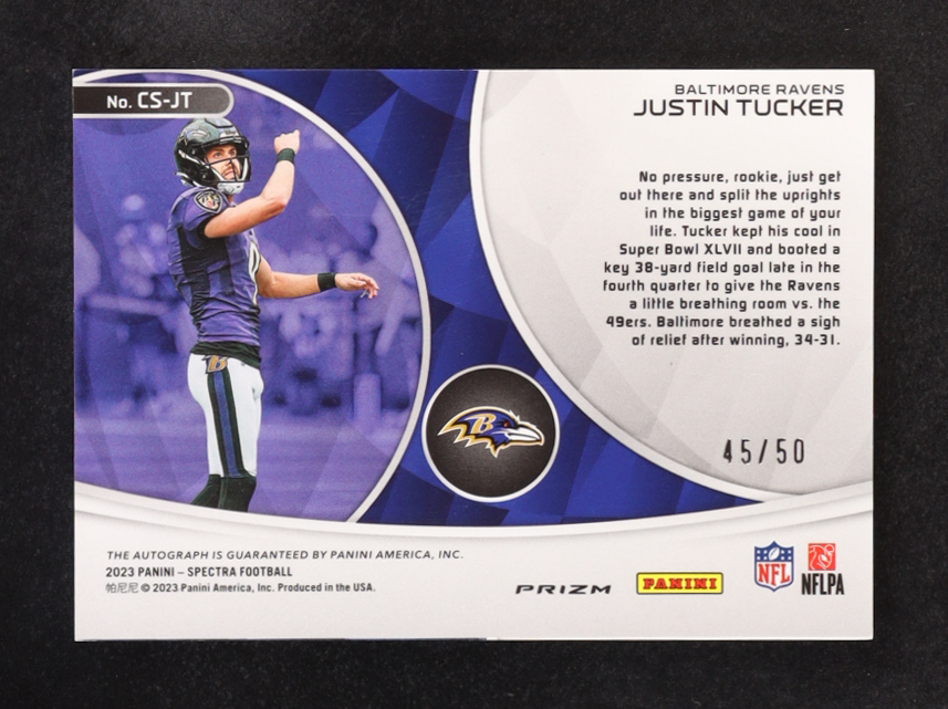 Justin Tucker 2023 Panini Spectra Champion Signatures #CS-JT #45/50