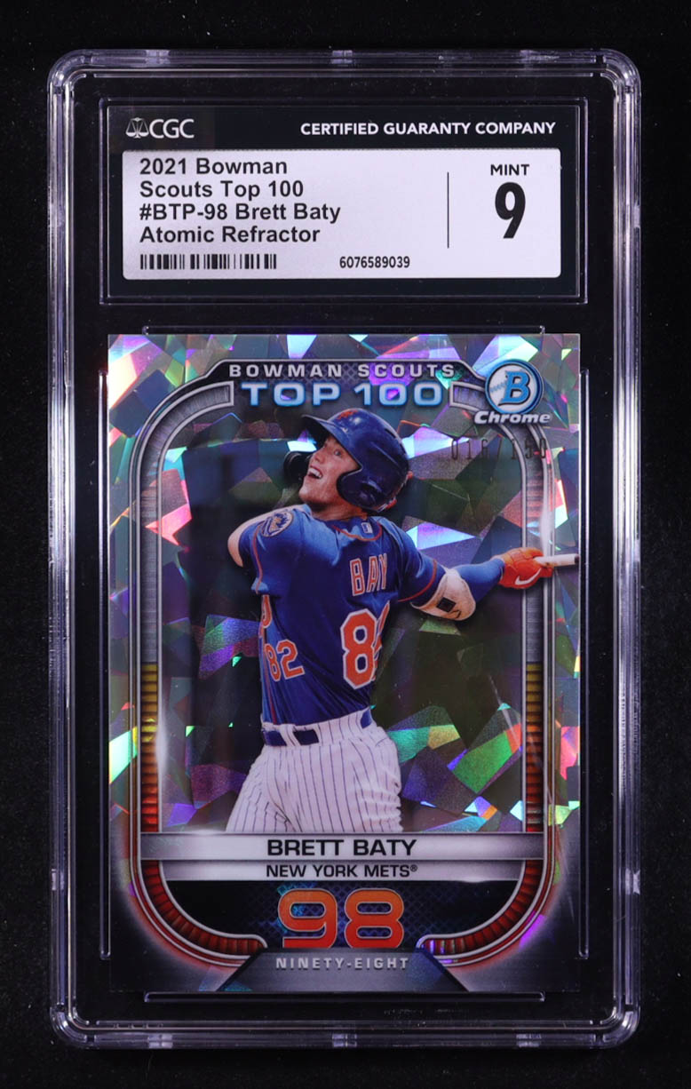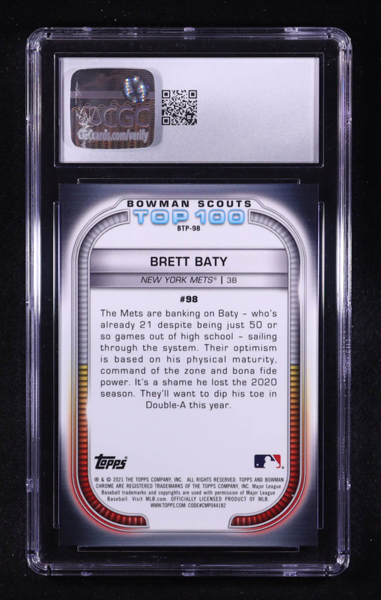 Brett Baty 2021 Bowman Chrome Scouts Top 100 Atomic Refractors #BTP98 #016/150 RC (CGC 9)