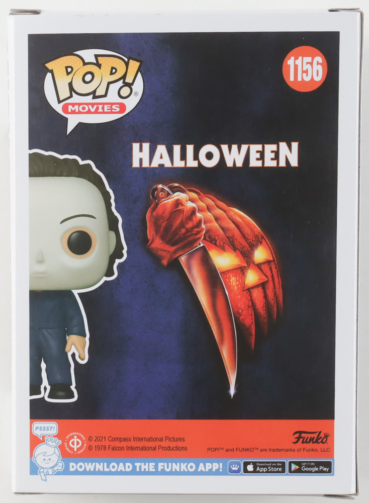 Vinyl figure measures approximately 4" tall and the packaging has been hand-signed and inscribed by Nick Castle (Michael Myers).
