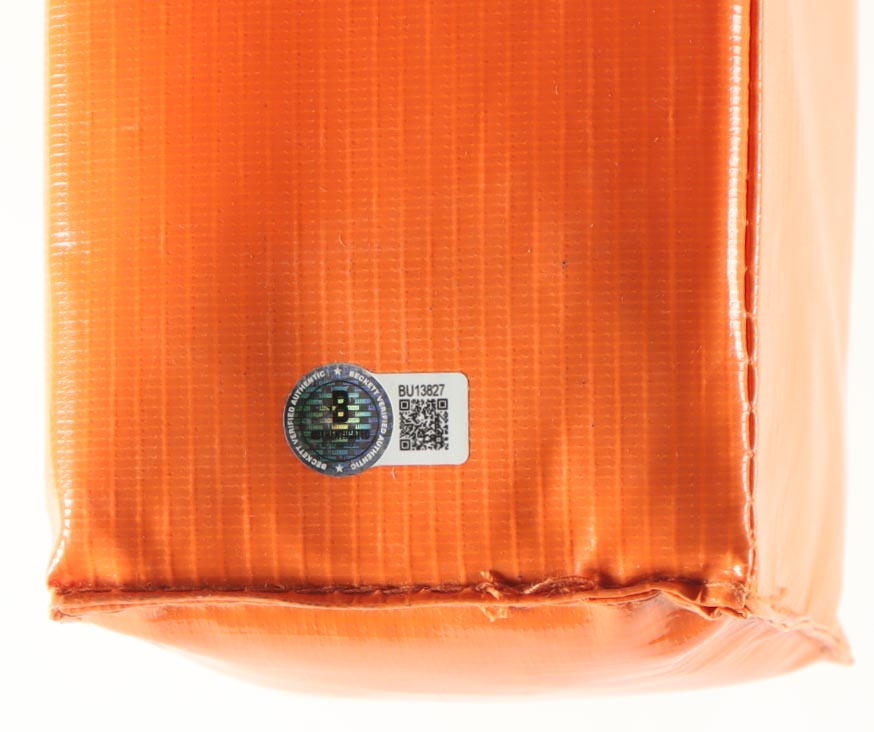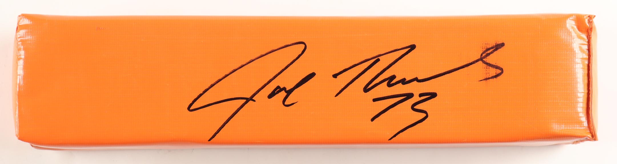 Football end zone pylon has been hand-signed by Joe Thomas (Cleveland Browns, HOF). Please note, the autograph is smudged.