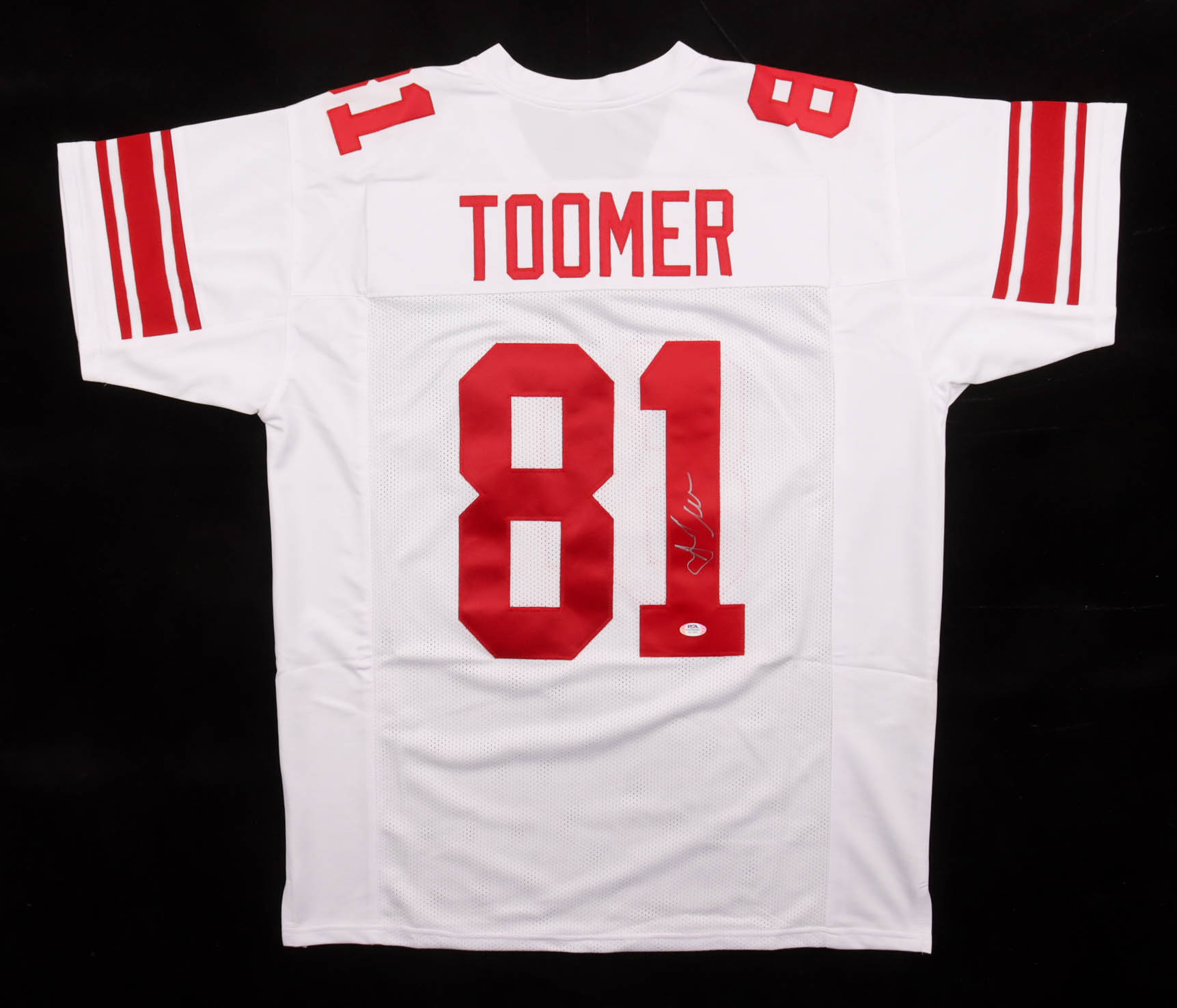 Custom jersey with everything sewn on, size XL. Hand-signed by Amani Toomer.