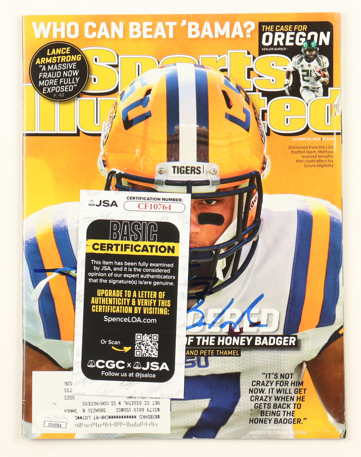 October 22, 2012 magazine has been hand-signed and inscribed by Tyrann Mathieu (LSU Tigers).