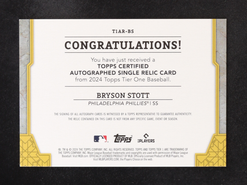 Bryson Stott 2024 Topps Certfied Auto #TIAR-BS #091/199