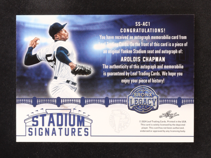 Aroldis Chapman 2024 Leaf Stadium Signatures Auto #SS-AC1 #3/6