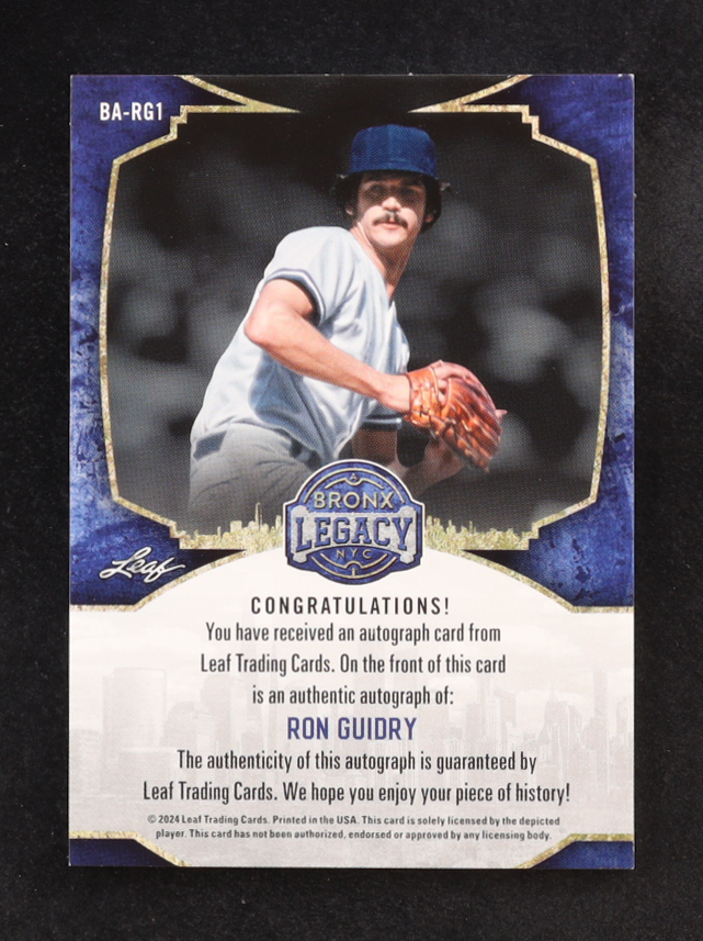 Ron Guidry 2024 Leaf Bronx Legacy NYC Signatures Auto #BA-RG1 #14/55